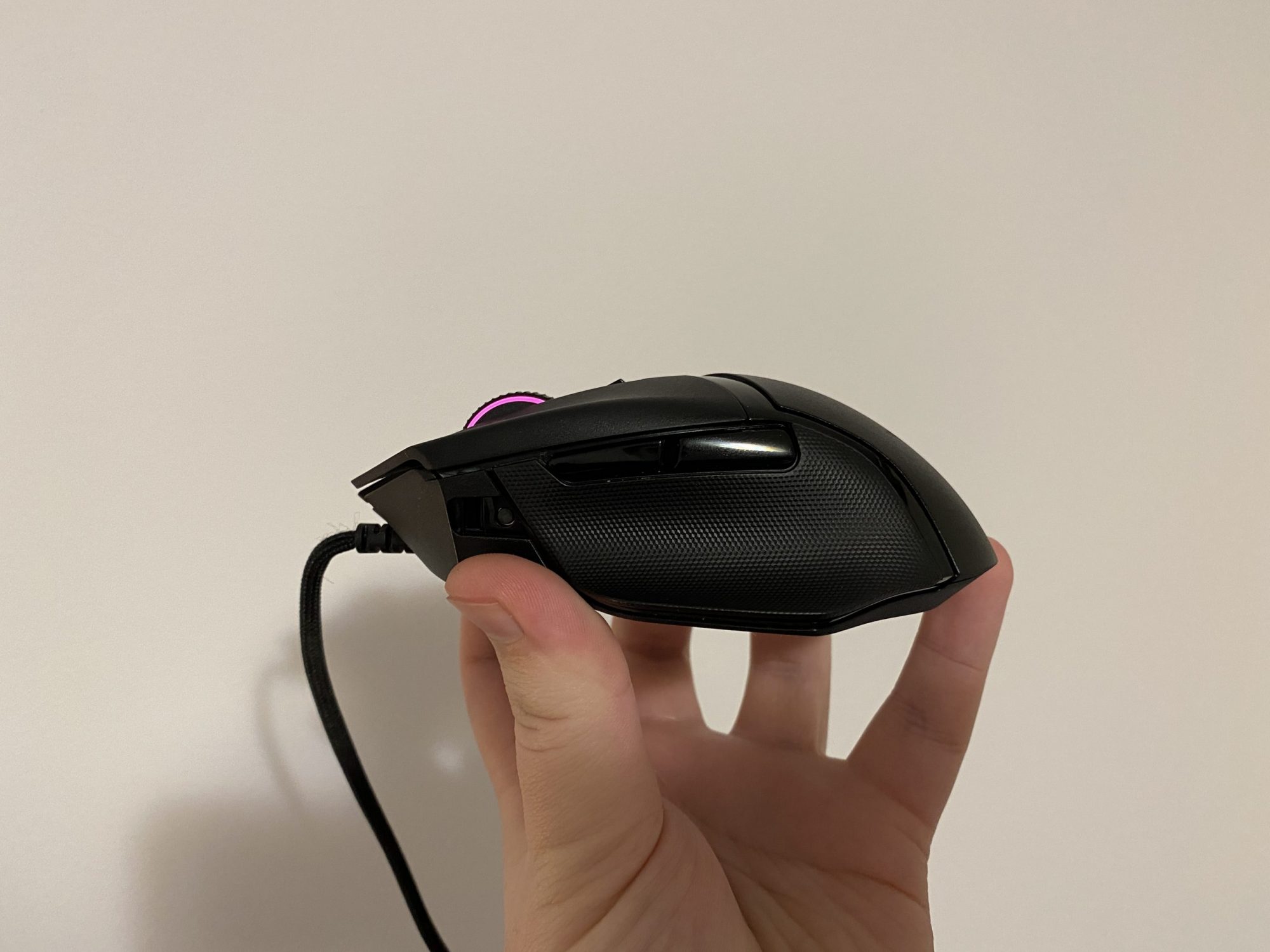 Degetul mare se sprijina placut pe aripioara laterala, insa mi-ar fi placut sa vad o solutie inteligenta si pentru degetul mic. Cred ca am o obsesie pentru Mionix Naos 7000 deoarece el avea sprijin si pentru degetul mare dar si pentru degetul mic. Vremuri….
