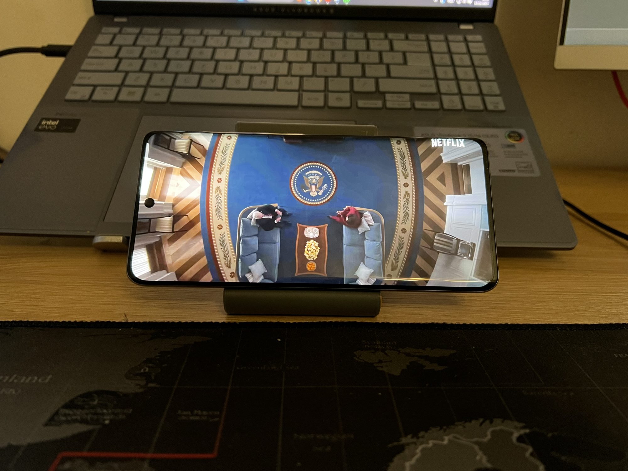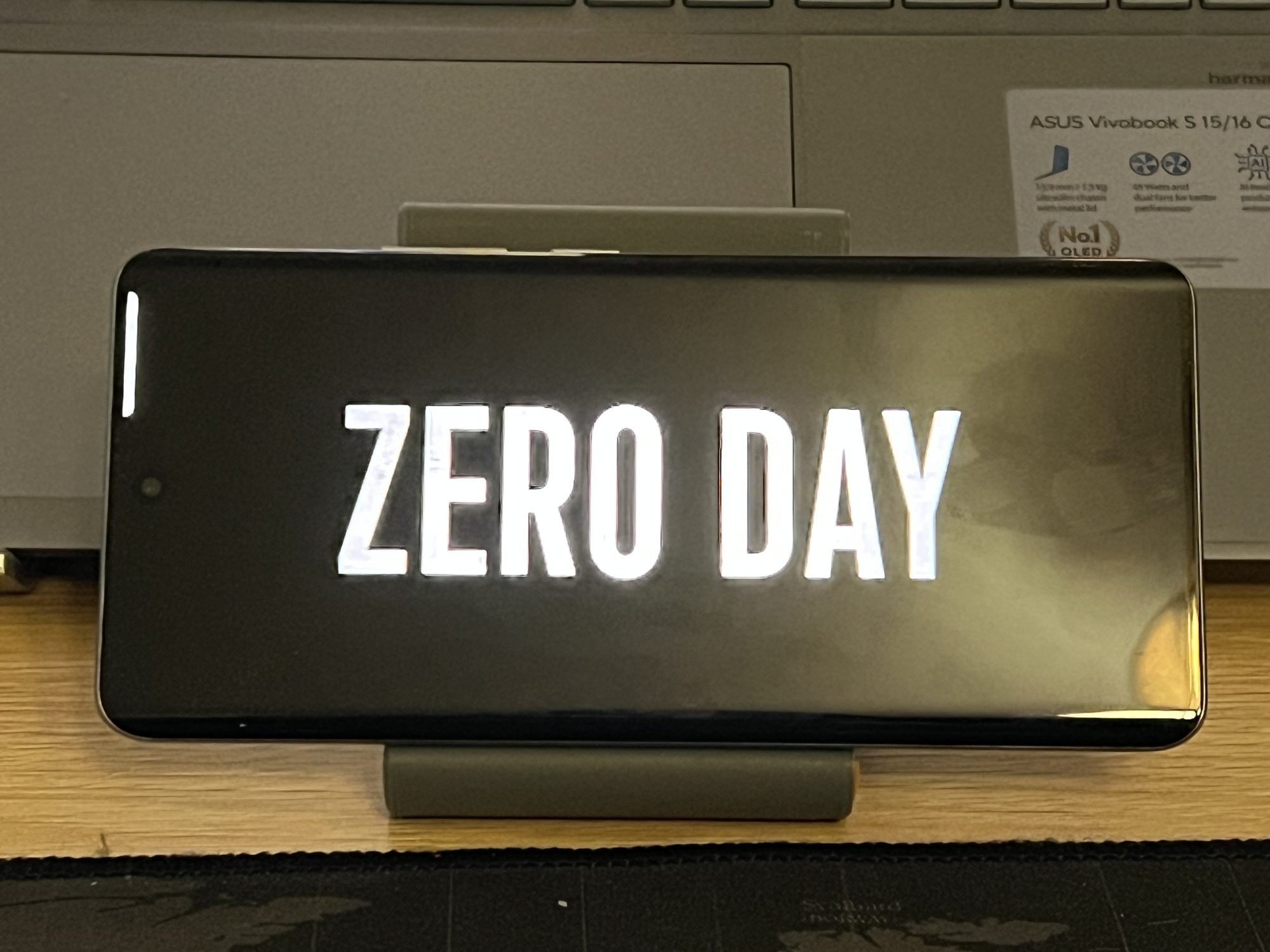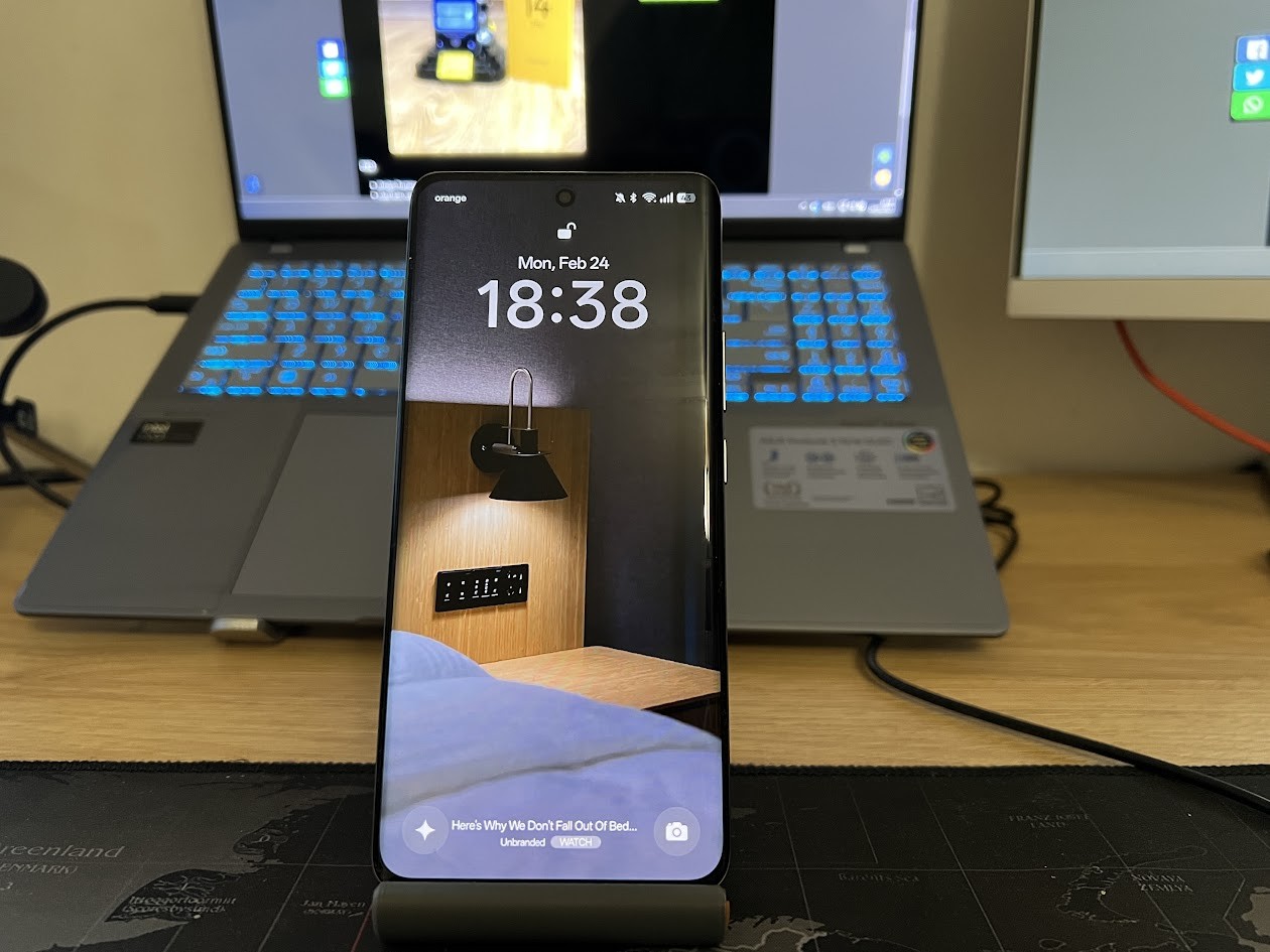 Din păcate, nu am primit modelul cu carcasă care își schimbă culoarea, ci pe cel cu piele ecologică pe spate. Ce să zic, poate prin la următoarea generație ocazia să văd și eu asta live. 😛