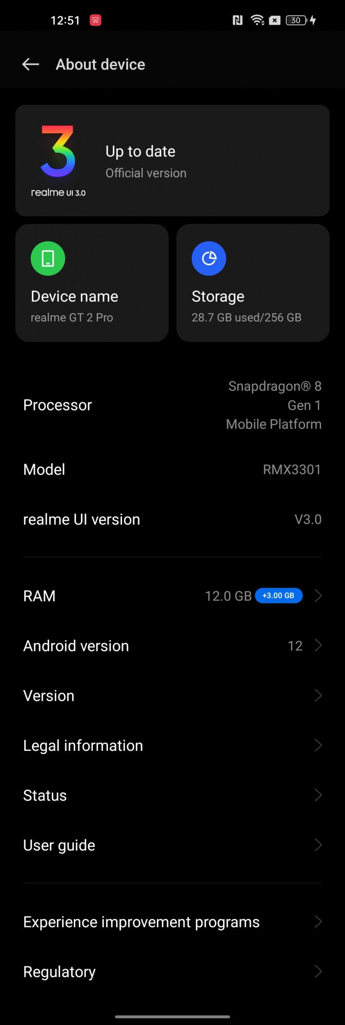 Telefonul vine din fabrică cu Android 12 (doh!), peste care este aplicată interfața realmeUI 3.0. Am primit și un update pe perioada cât l-am folosit, dar nu a fost nimic major, ci doar o actualizare a versiunii de securitate de la Google.