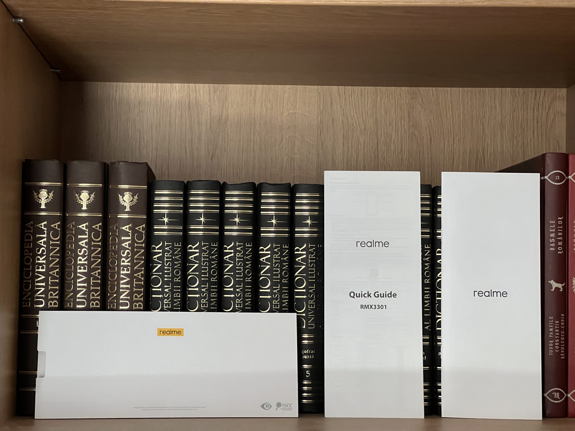 Pe acest smartphone avem un bio polimer pe spatele telefonului, care imită hârtia (de aici și denumirea oficială a culorii). realme a anunțat că, la realizarea lui, au rezultat cu 63% mai puţine emisii de carbon per kilogram. Practic, fiecare 1 milion telefoane produse cu această tehnologie și datorită ambalajuluiu eco folosit, sunt echivalentul a peste 3,5 milioane de sticle de plastic.