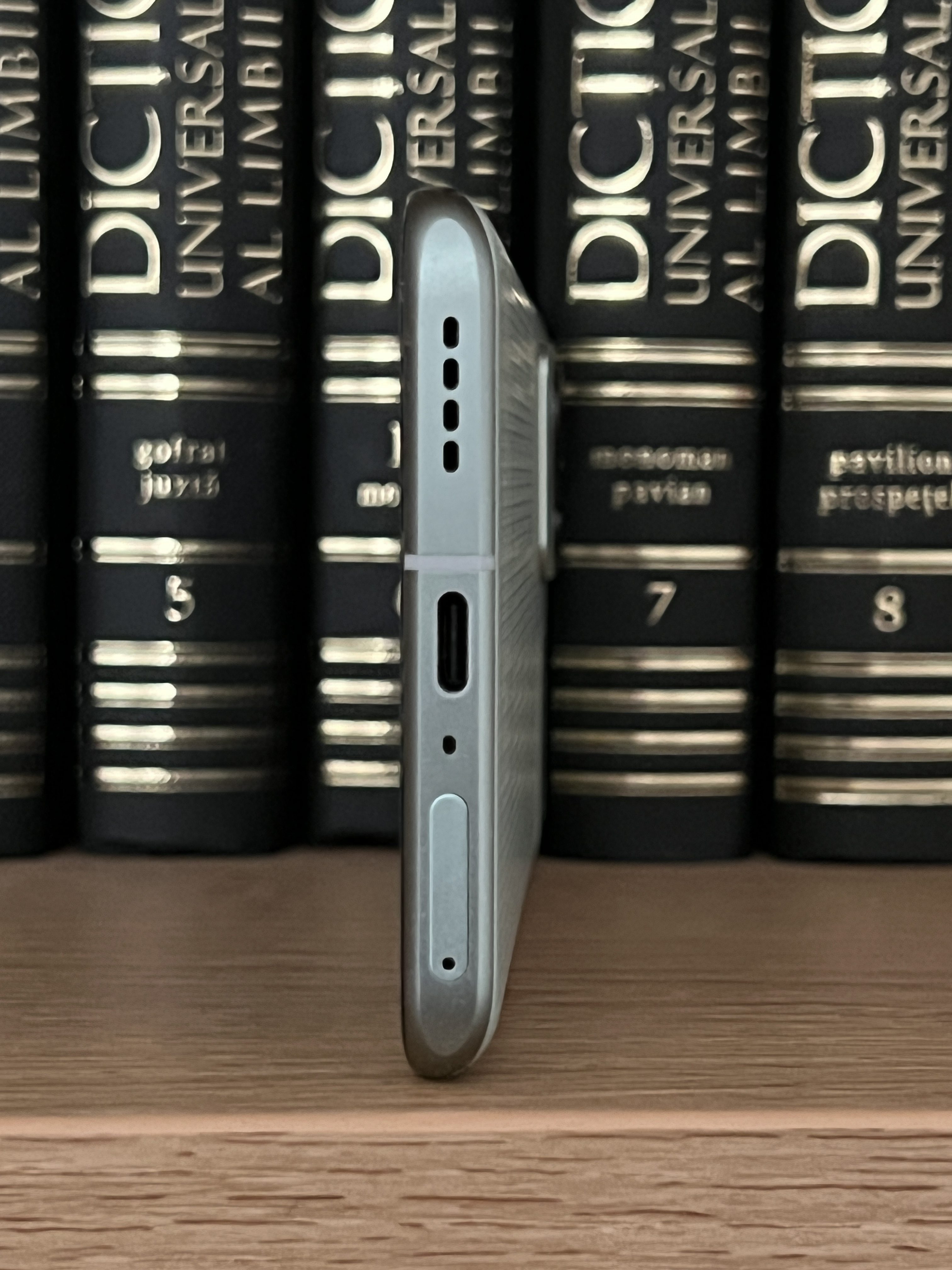 senzor de deblocare cu amprentă digitală integrat în ecran; disponibil în patru culori: Paper White, Paper Green, Steel Black, Titanium Blue; mufă de încărcare USB-Type C; Always-On display, OTG |