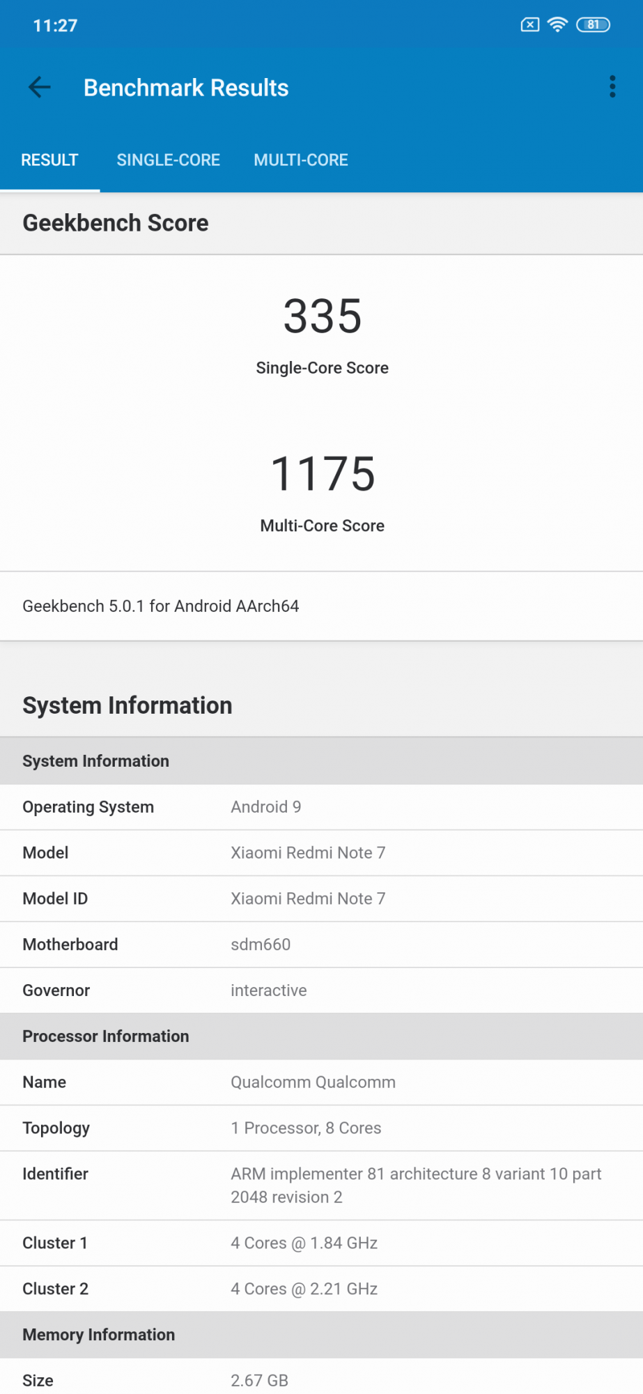 procesor Qualcomm SDM660 Snapdragon 660 (14 nm), CPU Octa-core (4×2.2 GHz Kryo 260 & 4×1.8 GHz Kryo 260) si GPU Adreno 512 |