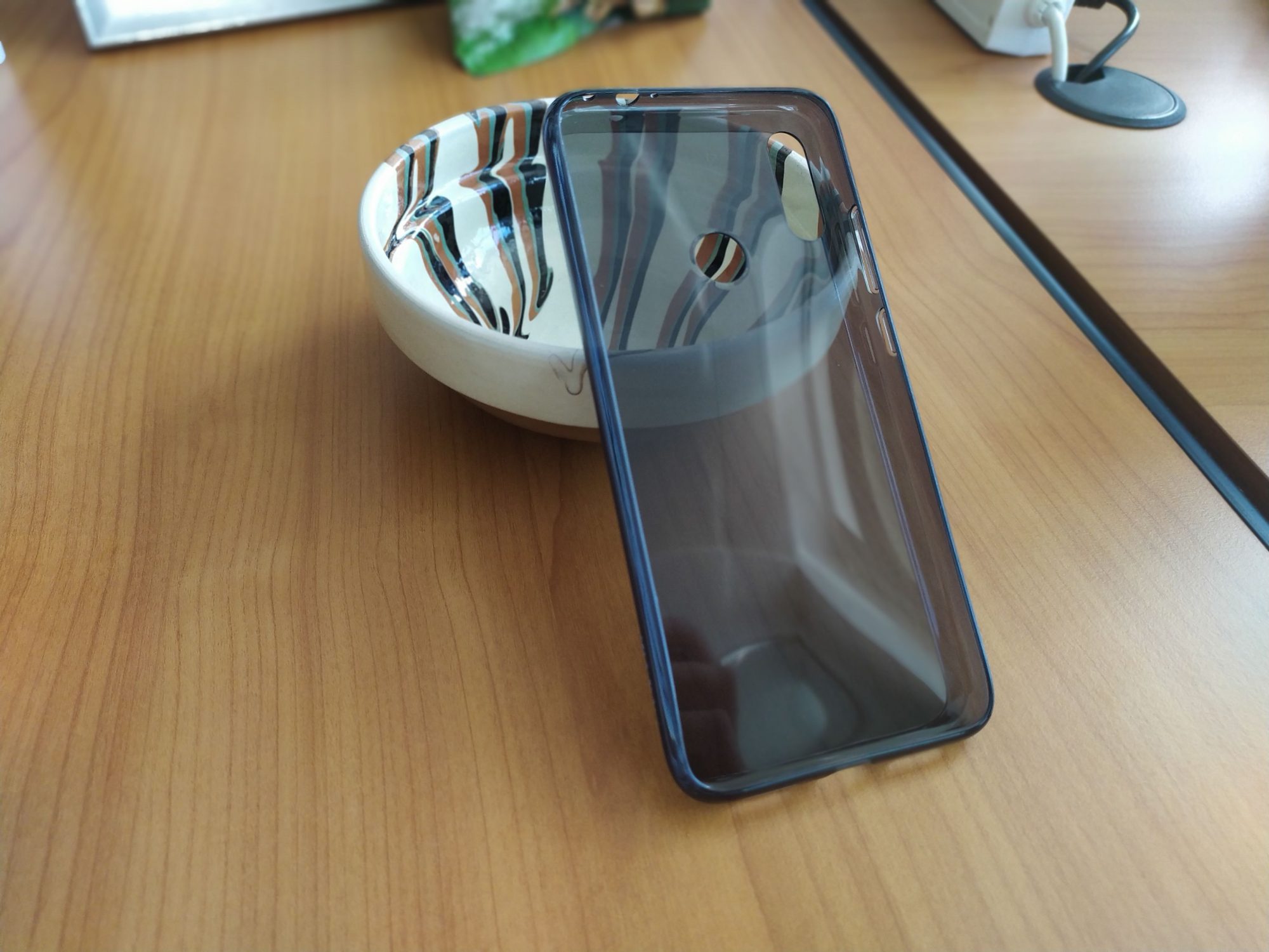 Cutia in care vine este dreptunghiulara (paralelipiped dreptunghic, pentru cei mai catolici), insa care nu seamana cu cele in care vin „fratii” de la Xiaomi. Aceasta este alba, cu insertii si text portocaliu, si pare prietenoasa. Cred ca, inca de aici se vede ca marca se adreseaza mai mult tinerilor. In interior avem telefonul, o husa de silicon transparent, cateva manuale, cheita de la SIM-tray si incarcatorul de perete.