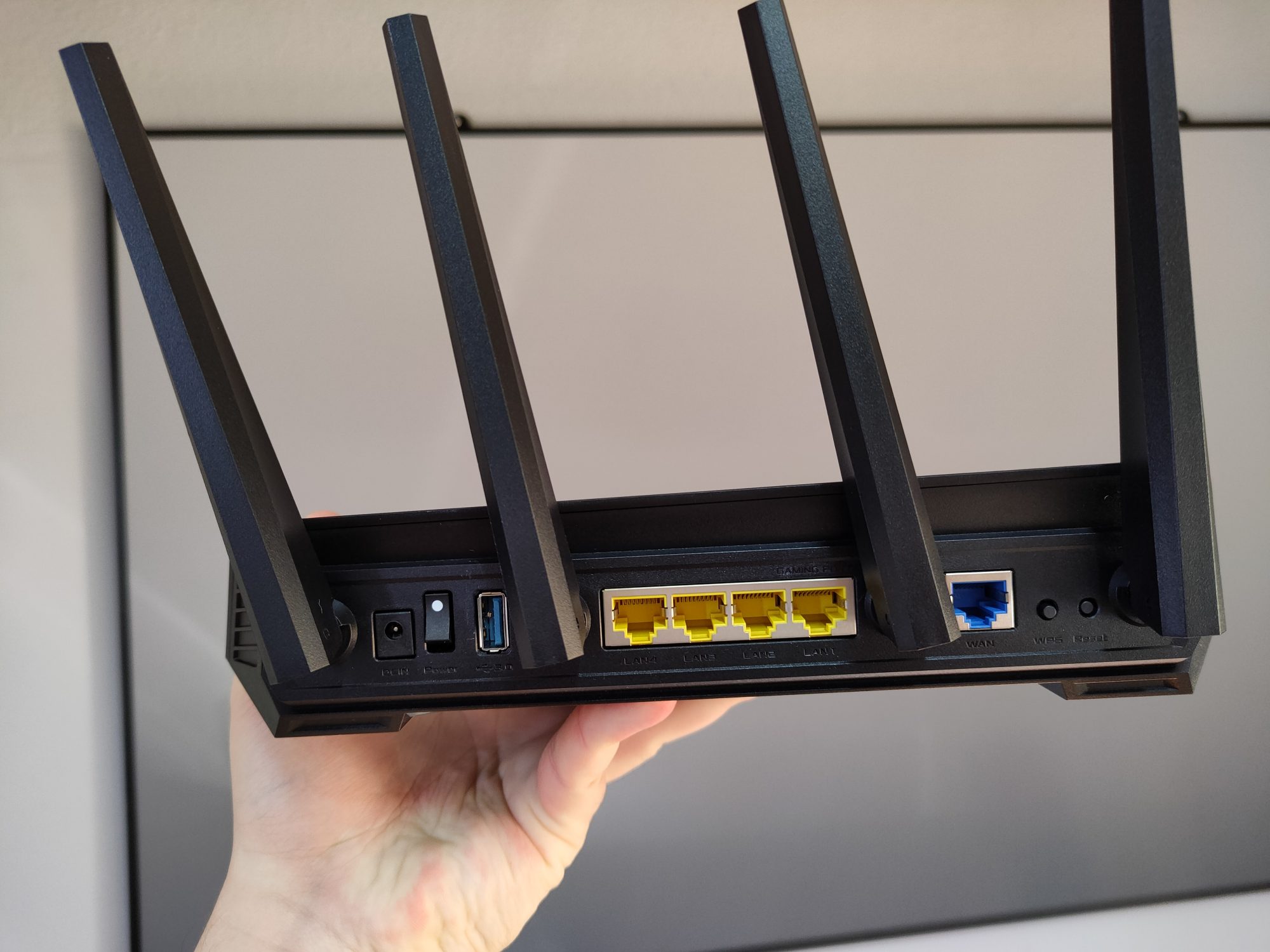 ROG STRIX GX-AX5400 este un router performant si cu un software bine pus la punct care-i ofera multe avantaje. Tehnic vorbin este un router ca oricare altul. Are 4 antene fixe (deci nu sunt detasabile), un port WAN si 4 LAN, USB si cam atat.