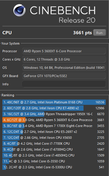 Eu cu un R5 3600, setat la 4.2 GHz pe toate nucleele cu 1,25V, obtin intre 3770 si 3850 (depinde ce programe mai merg in fundal). Iar referitor la temperaturi, se pare ca este mare diferenta intre W. Stealh cu care vine R5 3600 si W. Spire, deoarece în teste sintetice temperatura procesorului urca si la 95 grade C intr-o carcasa relativ bine aerisită.