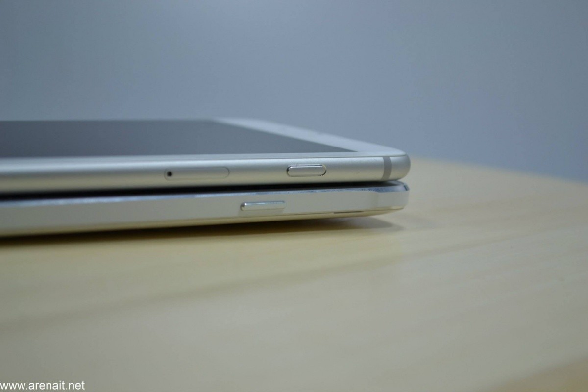 O diferenta foarte mica fata de Note 3 este ca marginile acestui telefon nu mai sunt inaltate. In trecut, la Note 3, marginile ecranului erau usor inaltate pentru a proteja ecranul atunci cand il pui cu el jos. Acum nu mai este asa. Pe partea frontala este sticla de sus pana jos, iar marginile sunt perfect netedete. Continuam cu partea frontala si descoperim in zona difuzorului pentru convorbiri 2 senzori pentru luminozitate si proximitate, iar langa ei camera de 3.7 MP.
