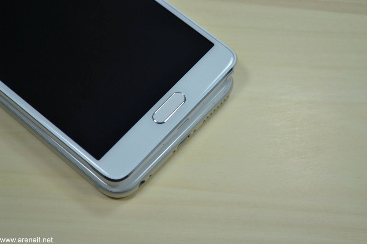 Dupa numeroase rugaminti adresate companiei, Samsung a livrat un terminal cu metal autentic. Mai precis, dupa Galaxy Alpha, Note 4 este al doilea smartphone ce vine cu insertii metalice. Chiar daca aceste insertii metalice se rezuma doar la o rama ce inconjoara telefonul, este un pas inainte. Feeling-ul este cu totul altul si parca in sfarsit ti in mana un telefon mai calitativ. La interior este construit dintr-un aliaj de magneziu pentru a oferi rezistenta, dar si o greutate mai redusa. La exterior, mai precis pe partea din spate, s-a optat tot pentru un capac din plastic. Plasticul respectiv incearca sa imite pielea, dar parca as atinge o bezea. Pe partea din fata se gaseste doar o fasie de sticla de sus pana jos.