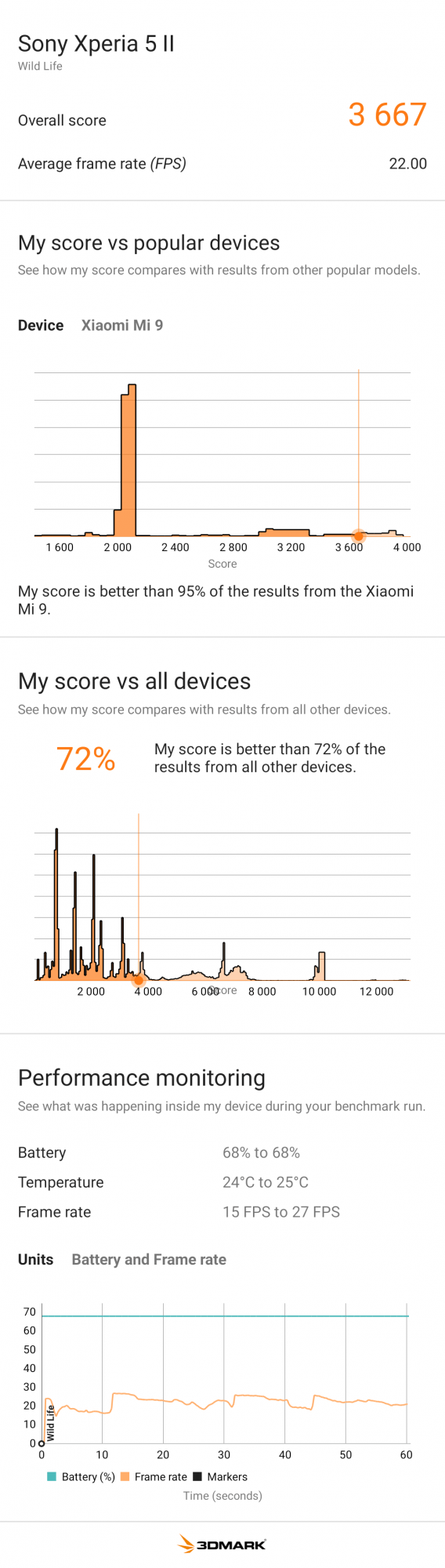 O baterie atât de mare într-o carcasă miniaturală este încă un punct în plus pentru Sony. Cei 4000 mAh au reușit să mă treacă ziu a liniștit, deși am avut tot felul de ședințe (video sau doar telefonice), am citit știri și am mai vizionat ceva Netflix. Iar toate astea le-am făcut cu refresh rate setat la 120 Hz, ceea ce mă face să cred că la 60 Hz aș fi putut liniștit să trec de pe o zi pe alta.