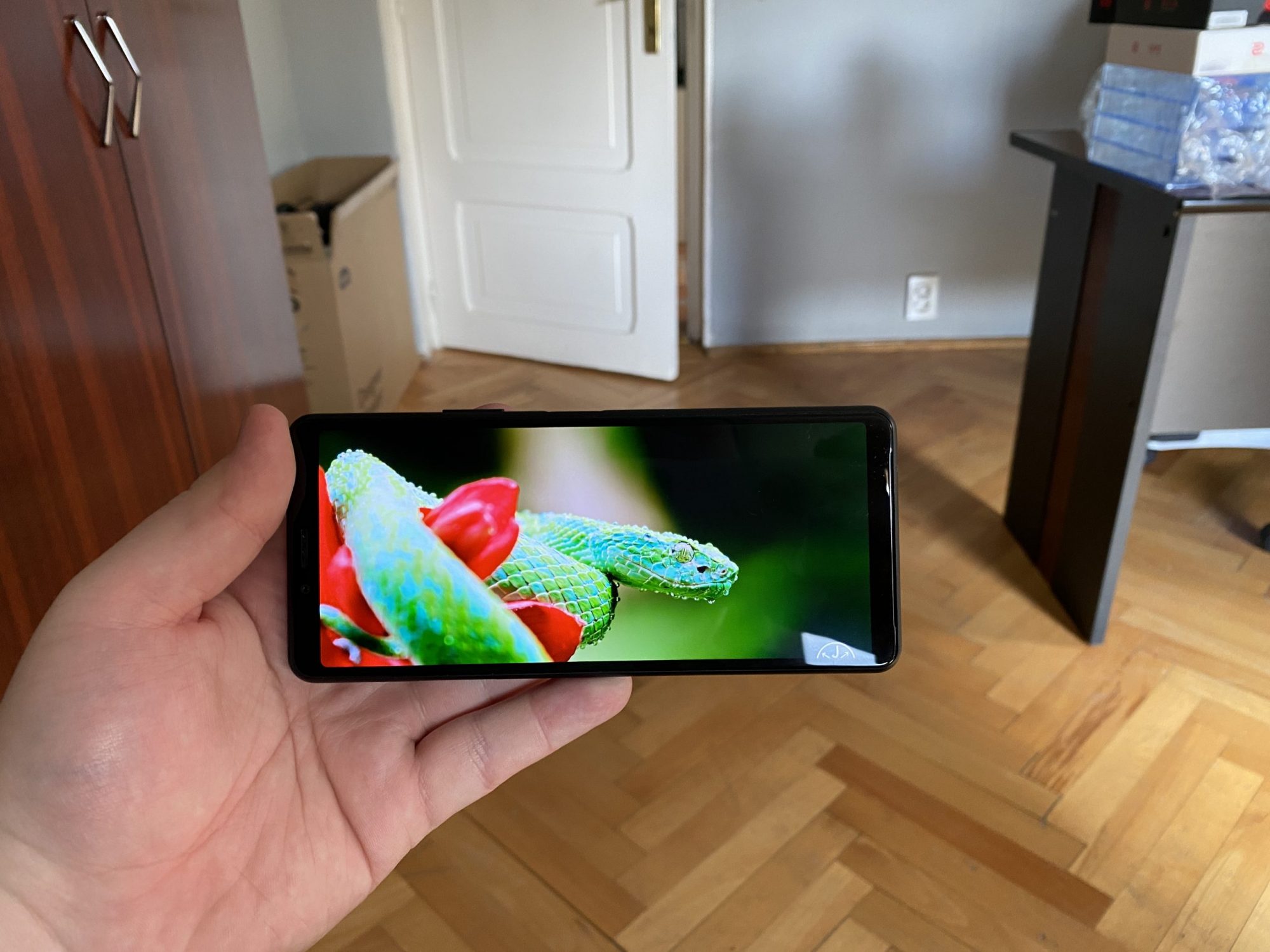 Discutam despre un ecran OLED in format 21:9. Se vede foarte bine nu am vazut pixelii, este suficient de luminos incat sa poata fi folosit in bataia soarelui, raspunde bine la comenzi si are culorile naturale.