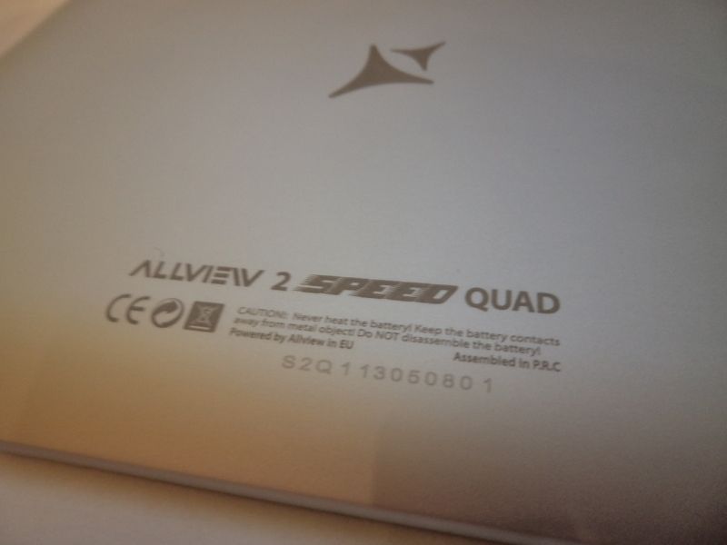 Bun, aici am avut placerea de a ma „izbi” de ceva care-mi place cu adevarat. Desi tableta e destul de grea (undeva pe la 450 grame) mi-a placut la nebunie faptul ca Allview a incorporat un capac spate de aluminiu care, macar la prima impresie, nu pare a se incalzi prea tare. Tableta a venit intr-o cutie draguta, care mi-a placut. Nu am fost nevoit sa o tai pentru a ajunge la tableta si, in plus, nu este nici chiar mare. Romanii nostri au avut grija sa-si gestioneze destul de bine spatiul pe care-l aveau la indemana.