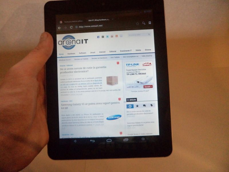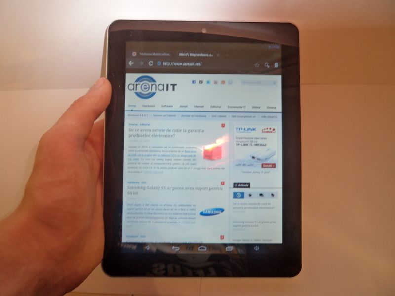 Ecran. Si la acest capitol gadgetul nu lasa de dorit. Este adevarat, nu exceleaza, dar se comporta destul de bine. Ecranul e unul TFT-LCD de 8 inch cu o rezolutie de 1024×769 pixeli si format 4:3. Touchscreen-ul se misca destul de bine. Am fost putin dezamagit de unghiurile de vizualizare. Exista si tablete ieftine cu ecrane mai bune, in comparatie cu acestea, tableta de fata dezamageste. Totusi, nu este chiar grav: se vede destul de bine.