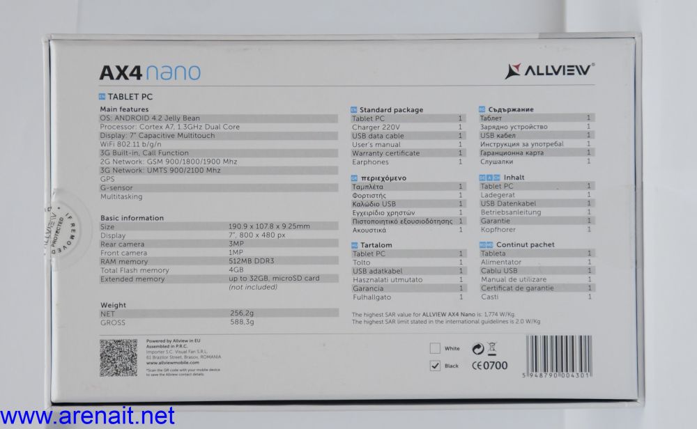 Tableta ne-a fost oferita in teste de catre Visual Fan si le multumim pe aceasta cale. AX4 Nano m-a lasat cu un gust placut si ofera o experienta asemenea, in acesti 400 de lei costa. O puteti gasi, de exemplu, la 399 RON la Altex sau la acelasi pret la PC Garage. Imi place cum este desenata, imi plac performantele ei si faptul ca ofera toate posibilitatile de conectivitate la un pret mic. Tableta este ideala daca vreti un telefon cu ecran mare sau sa cititi carti si sa stati pe facebook.