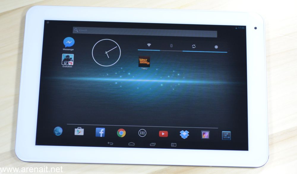 Despre ecran nu ma declar tocmai multumim. Luminozitatea tabletei este destul de mica, iar in bataia soarelui nu vei reusi sa vezi ceva pe ecran. Initial, cand am pornit tableta, am crezut ca luminozitatea este la minim, dar era la nivelul maxim. In plus, culorile sunt calde, iar albul este mai mult galben. In rest, raspunde bine la comenzi, pare rezistent, iar unghiurile de vizualizare sunt decente.