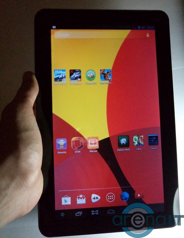 Ecran. Desi nu a excelat la acest capitol, tableta are un punct in plus aici. Nu ma asteptam la cine stie ce claritate a imaginii pe o rezolutie de doar 1024×600 pixeli. Dar totusi, pentru cei care-si doresc internet sa citeasca eBook-uri sau sa urmareasca video-uri este destul de ok.