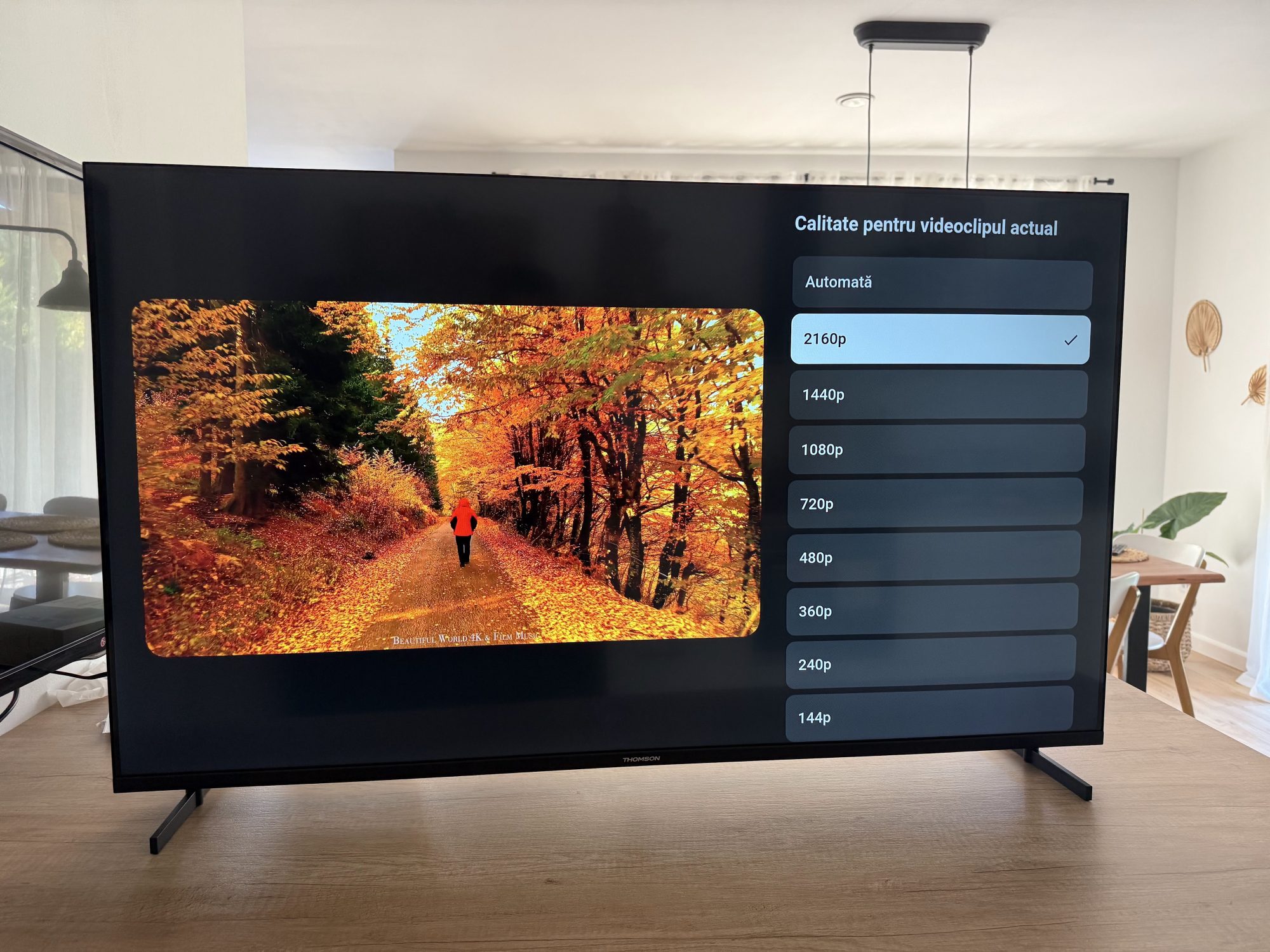 Cei de la Thomson ne-au trimis la test un televizor smart cu diagonală de 126 cm (50 de inch) și rezoluție Ultra HD 4K. Acest model se remarcă prin raportul excelent calitate/preț, fiind ideal pentru utilizatorii care caută o experiență 4K la un preț accesibil.