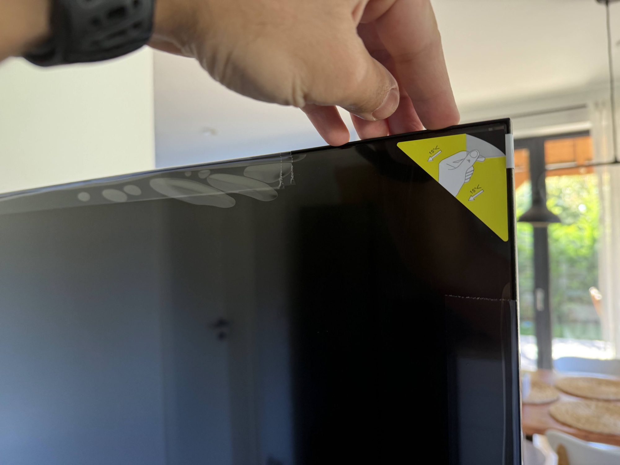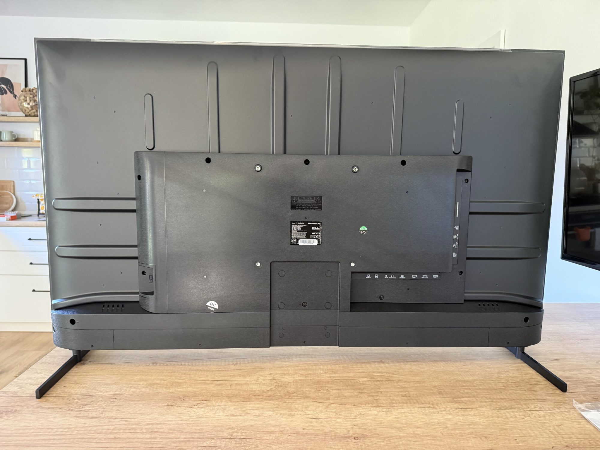 Televizorul vine protejat cu folie pe ecran și are un design simplu, plăcut ochiului, cu un cadru aproape fără rame (frameless). Este ușor și bine construit pentru categoria sa de preț. Telecomanda inclusă este ergonomică, iluminată și funcționează pe Bluetooth, facilitând controlul chiar și în întuneric.