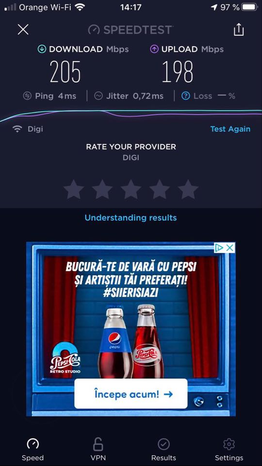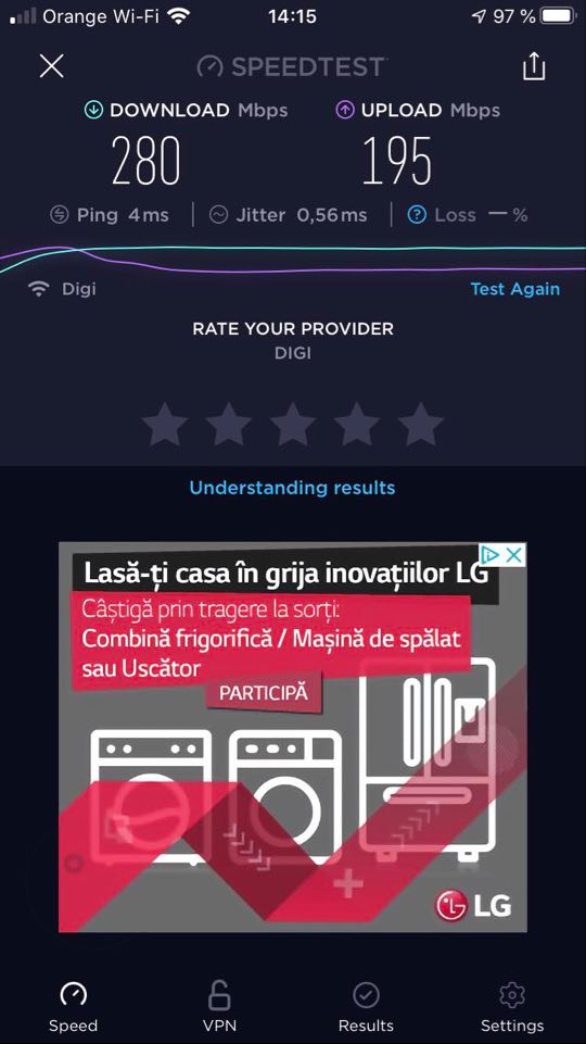 Totusi, am rulat niste teste prin diverse locuri. E cam greu sa nu ai viteze bune sau acoperire slaba, exista peste tot in casa Wi-Fi maxim si poti sustine si gaming online.