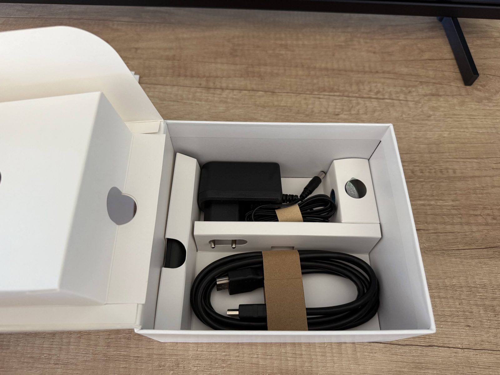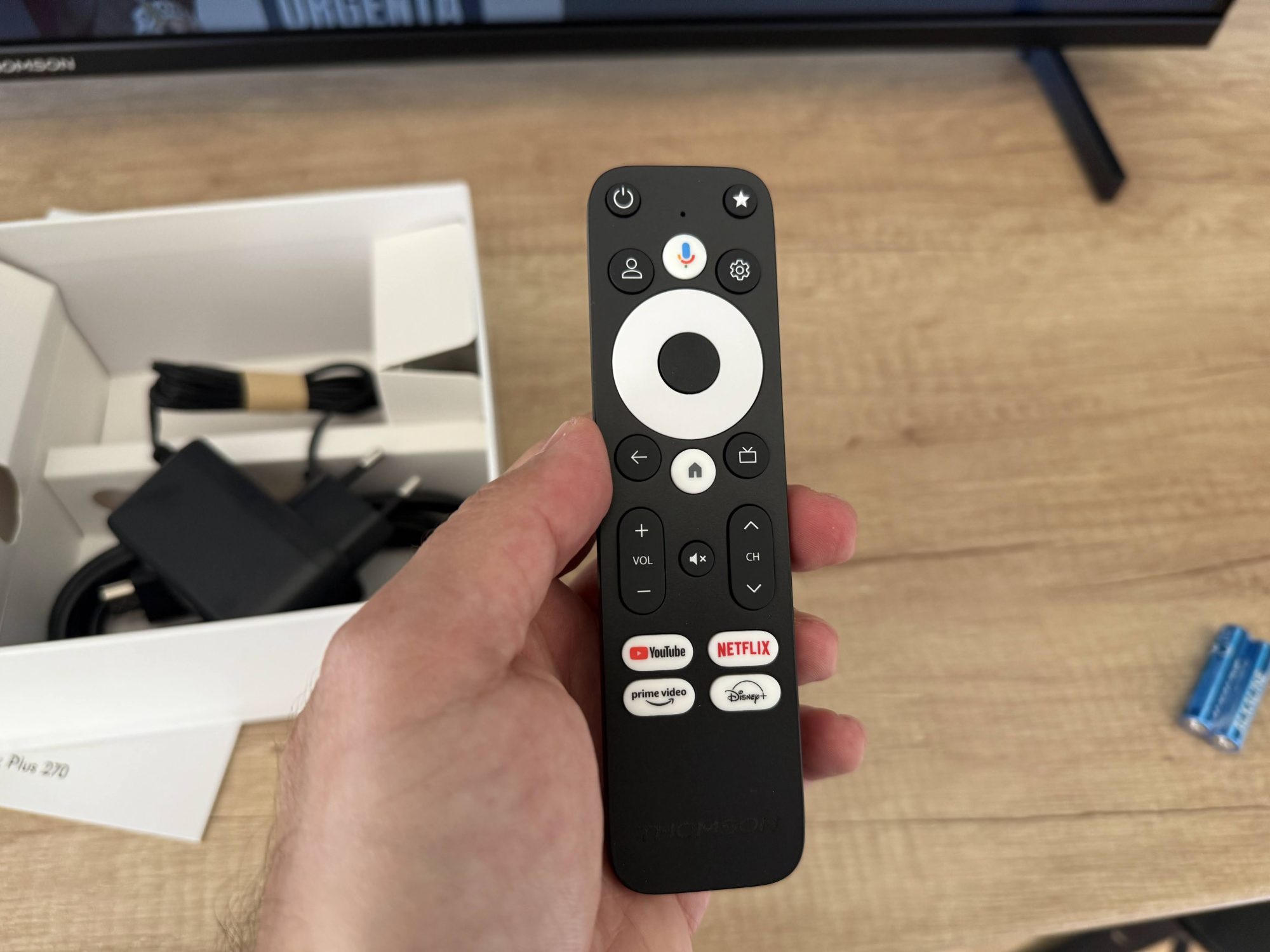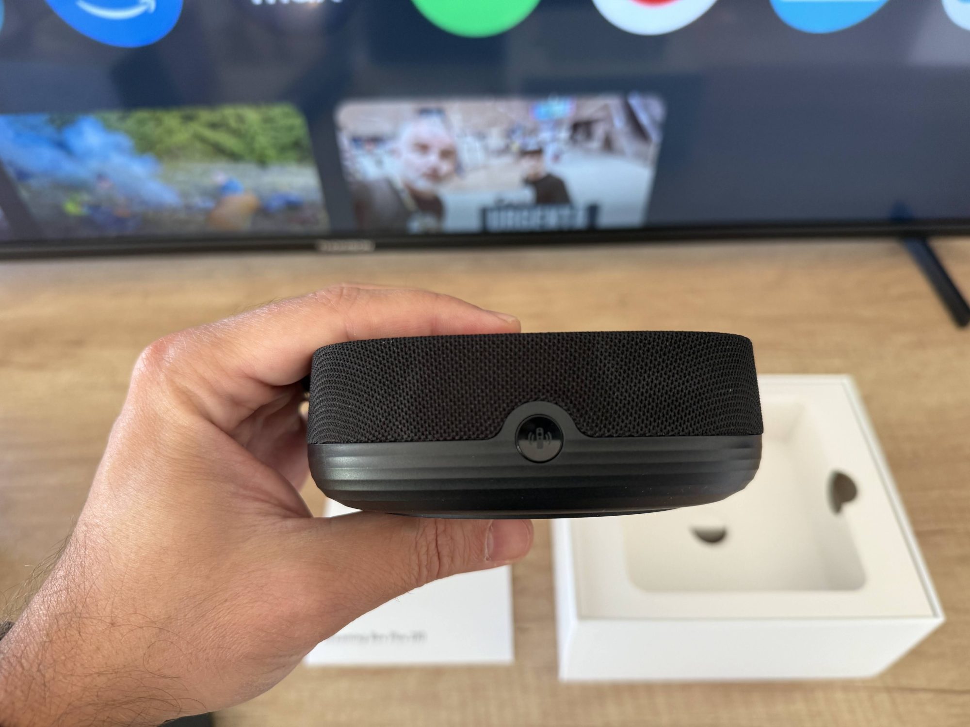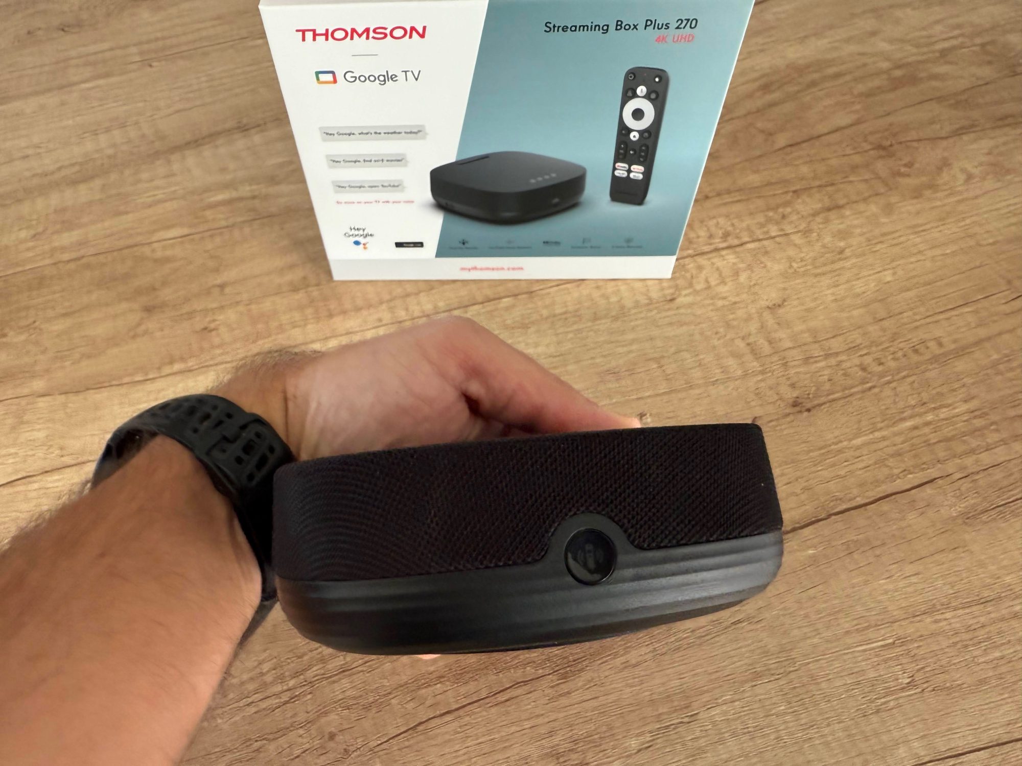 Dispozitivul vine într-un pachet complet ce include streaming box-ul, telecomandă Bluetooth și IR, cablu HDMI, adaptor de alimentare (12V/1.5A) și două baterii AAA. Design-ul este compact și elegant, cu dimensiuni de 12x12x4 cm, margini rotunjite și finisaj mat disponibil în negru sau alb. Pe partea superioară se află logo-ul Thomson discret și patru LED-uri full-color ce indică starea Google Assistant. În partea frontală regăsim butonul „Find My Remote”, pe lateral un comutator pentru activarea/dezactivarea microfonului, iar în spate porturile Ethernet, HDMI 2.1, USB 3.0, DC IN și un buton discret pentru reset.