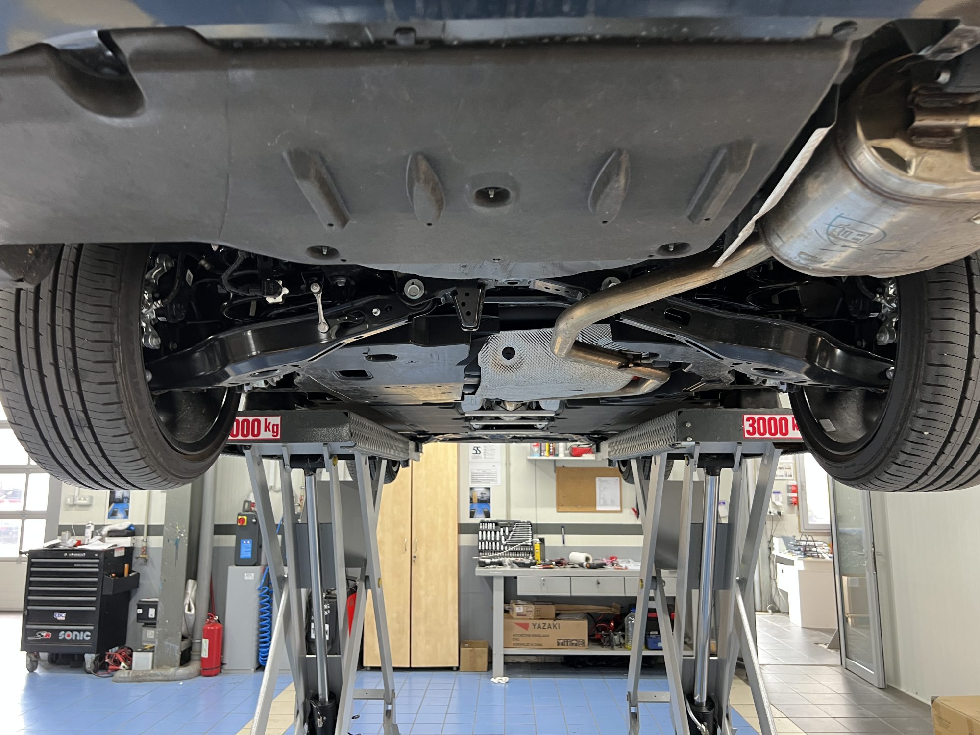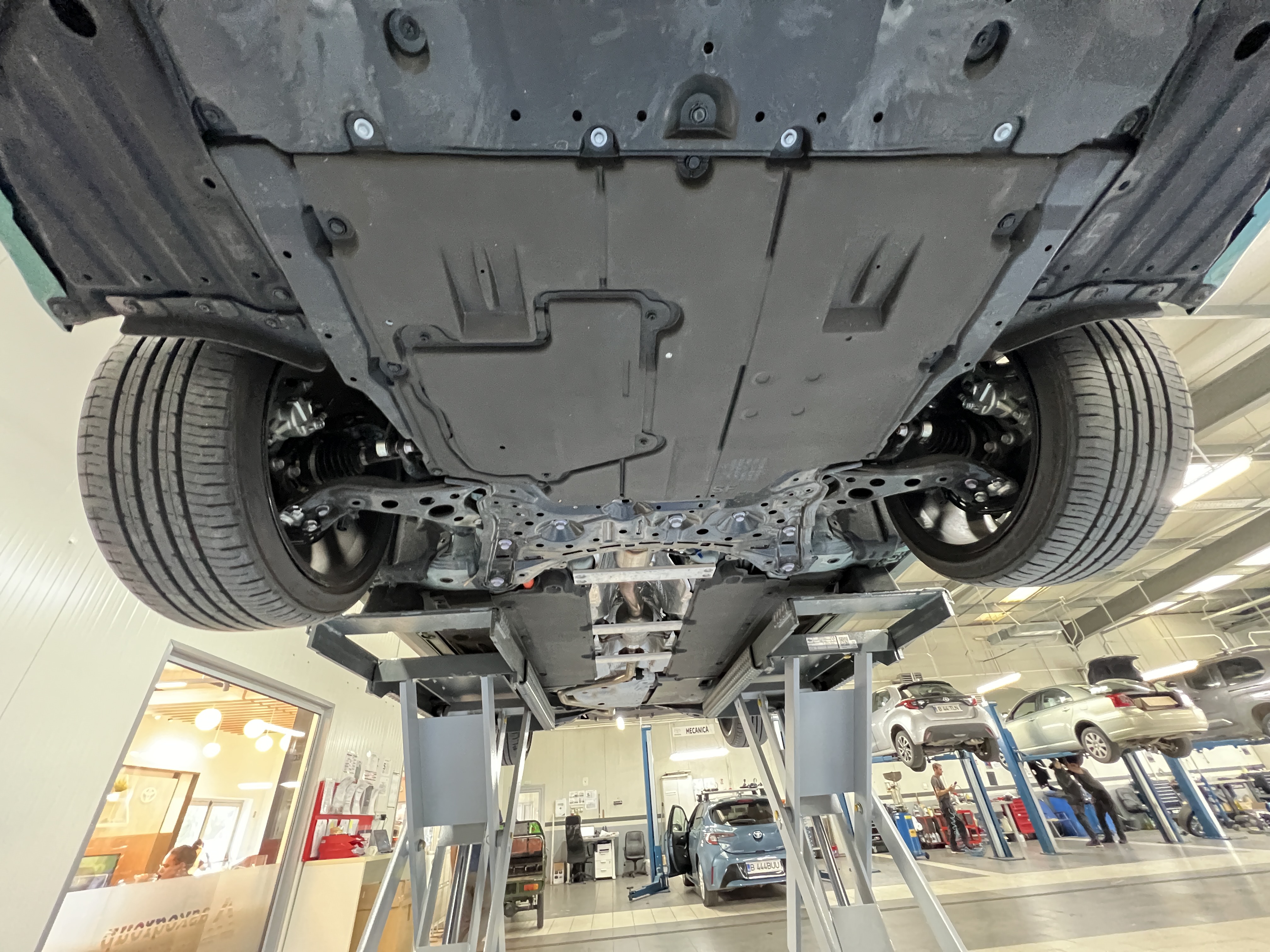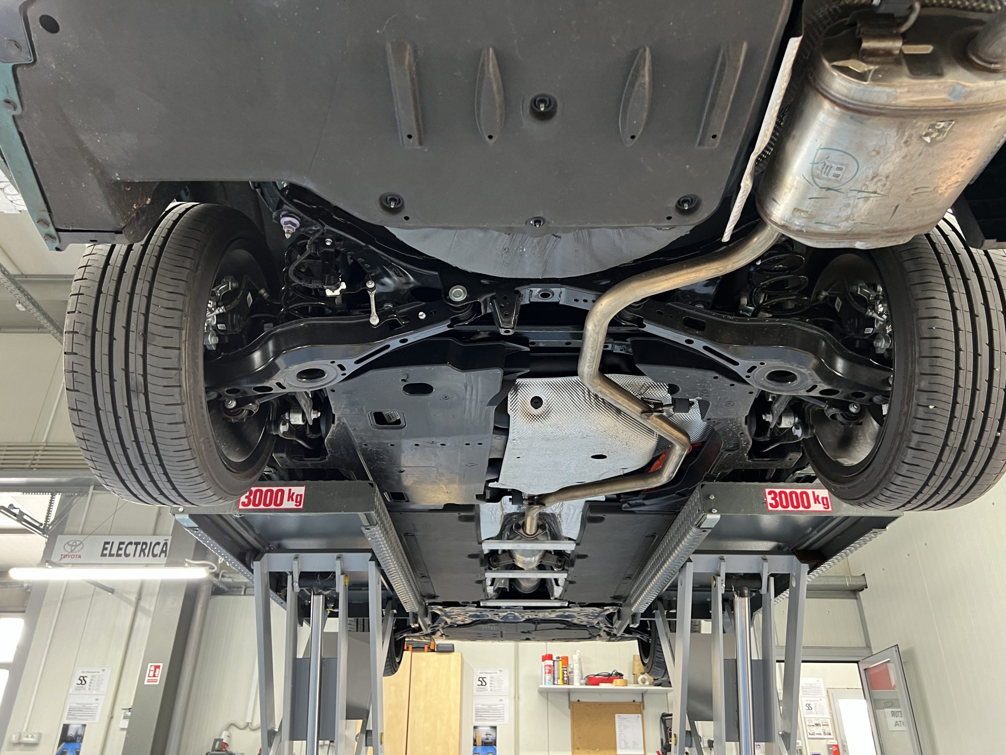Mi-am permis sa ridic masina pe elevator chiar la Toyota in reprezentanta. Nu am umblat la nimic, dar voiam eu sa vad cum arata pe sub ea. Cu ocazia asta vedeti si voi cum arata partea nevazuta a masinii.
