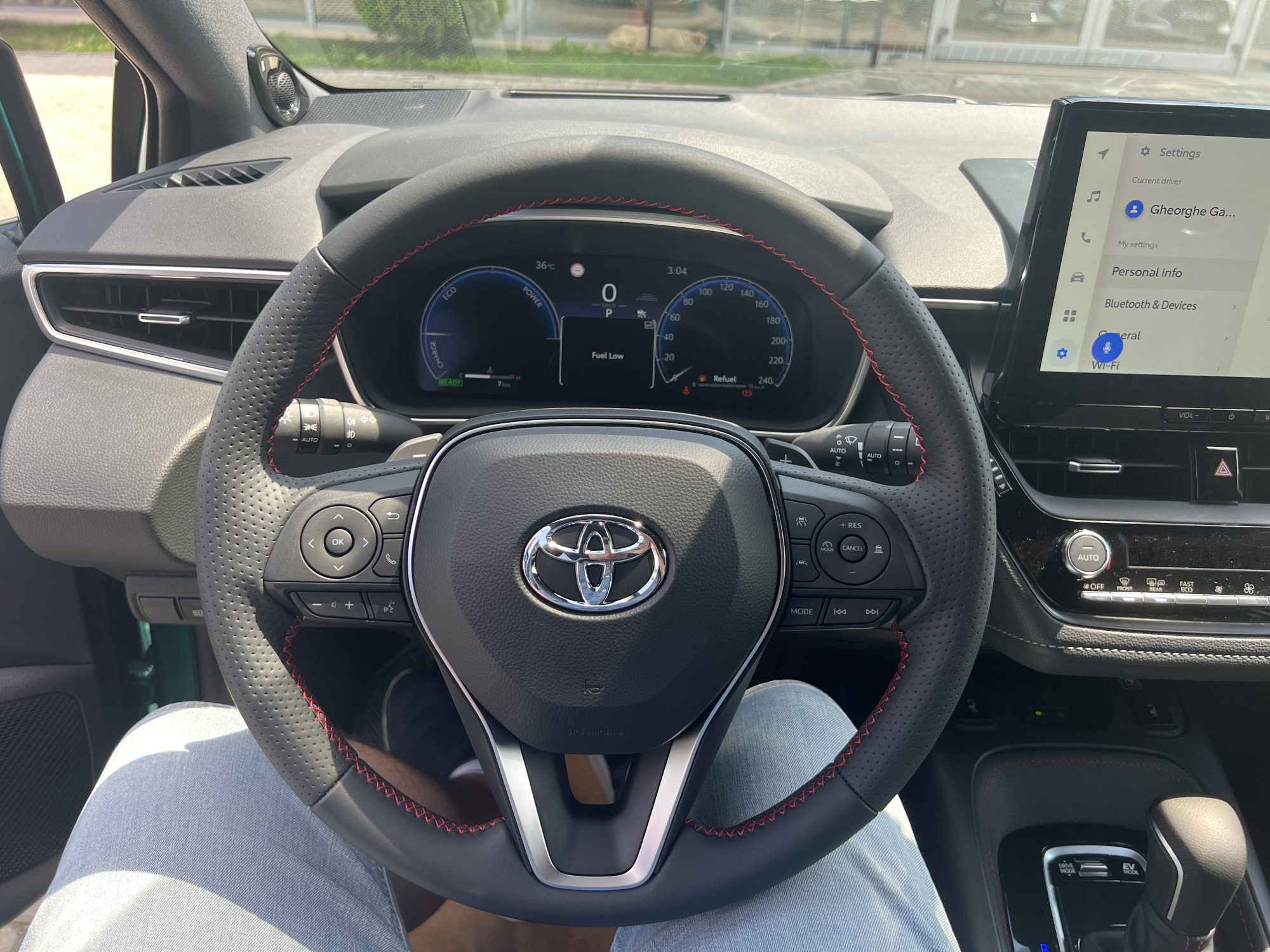 Toyota Corolla GR Sport 2024 se conduce excelent. Am fost impresionat de confortul oferit, chiar și cu jantele de 18 inch și anvelopele 225/40/R18. Deși jantele sunt expuse riscului de zgârieturi, protecția oferită de anvelope este remarcabilă. Comparativ cu mașinile dotate cu jante mai mici (15 sau 16 inch), care sunt de obicei mai confortabile la denivelări, Corolla GR Sport oferă o experiență de conducere la fel de plăcută. Toți cei care au călătorit cu mine au fost de acord cu această impresie.