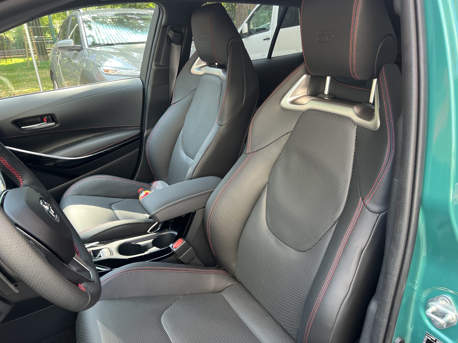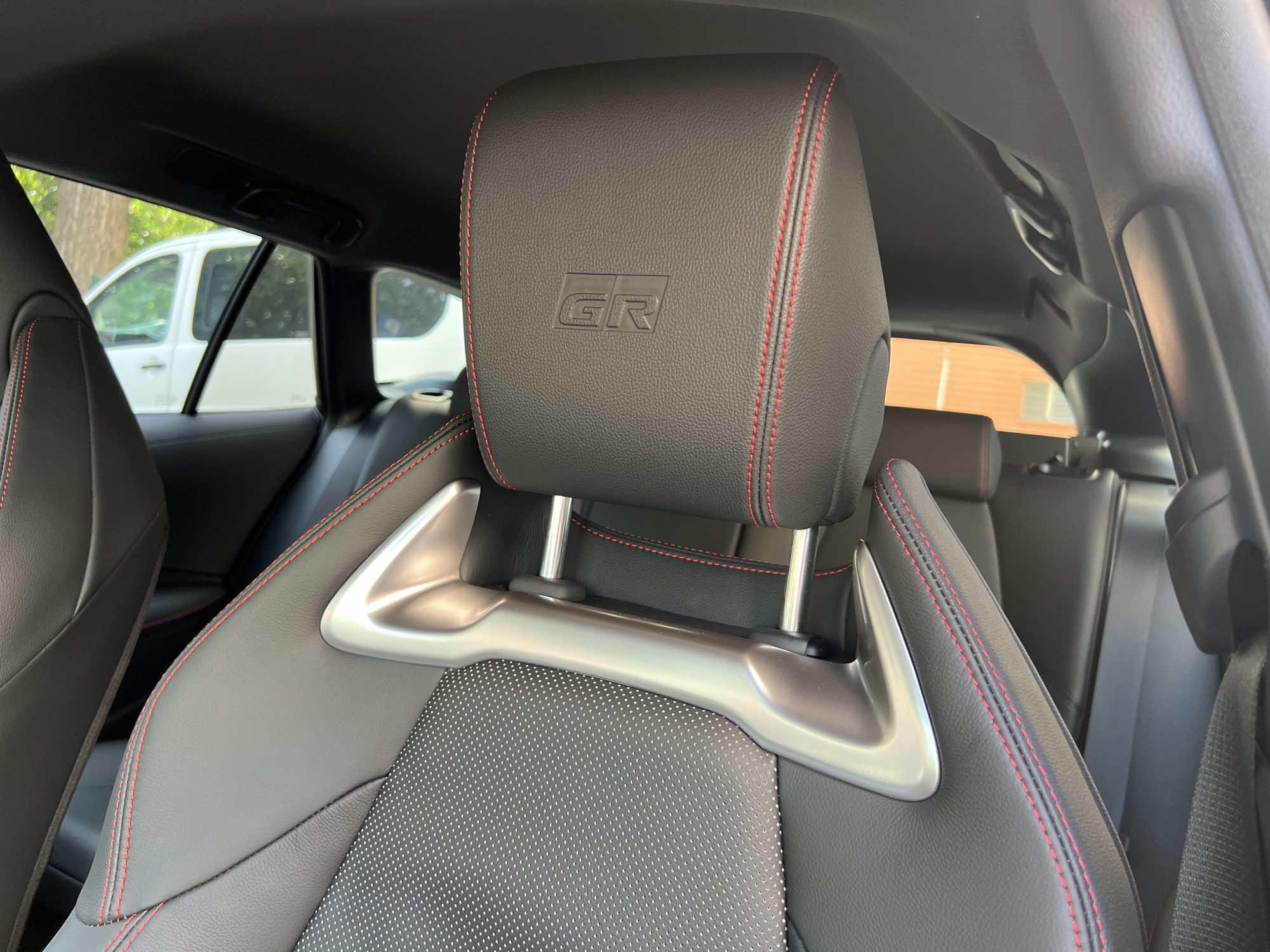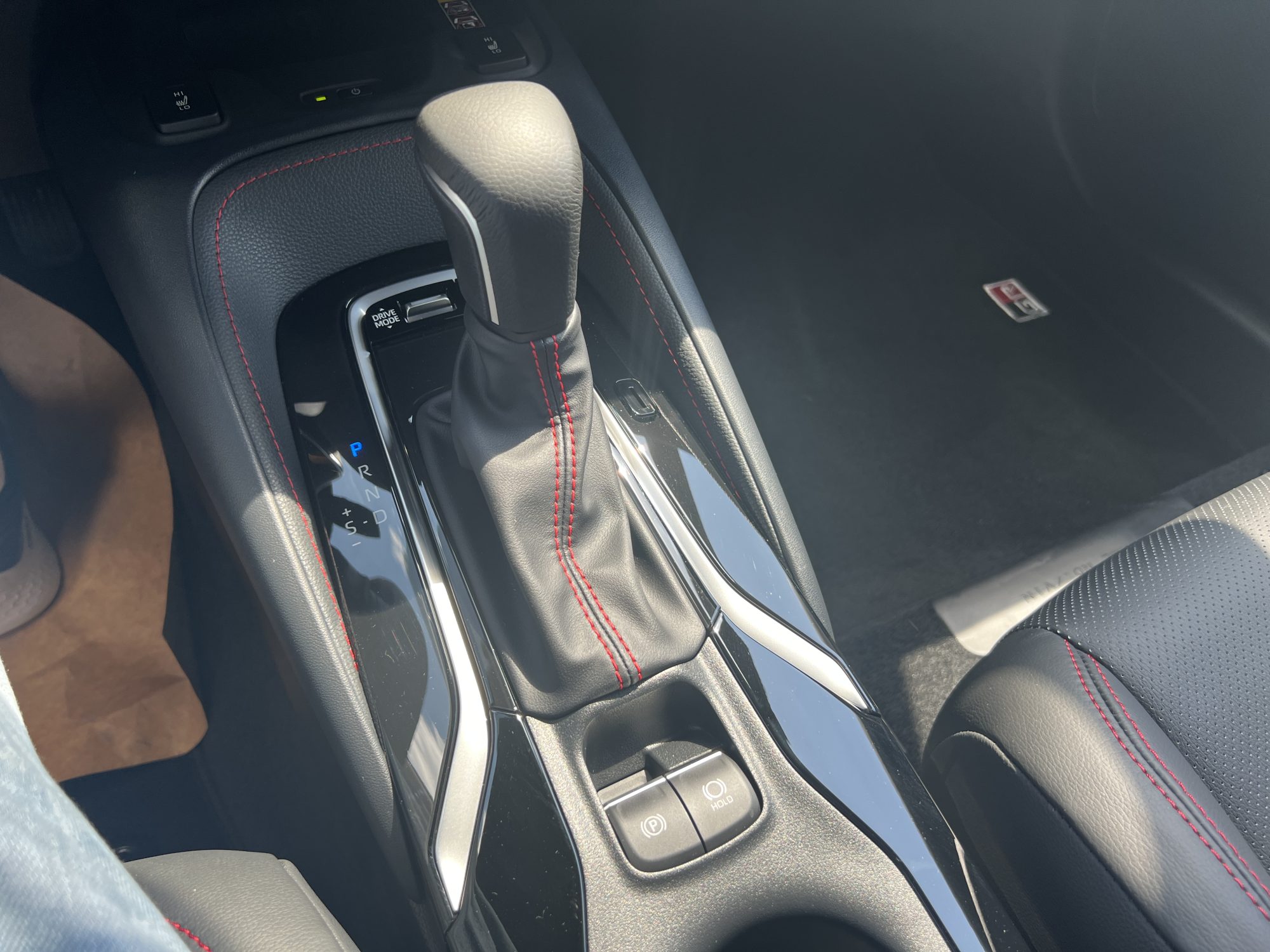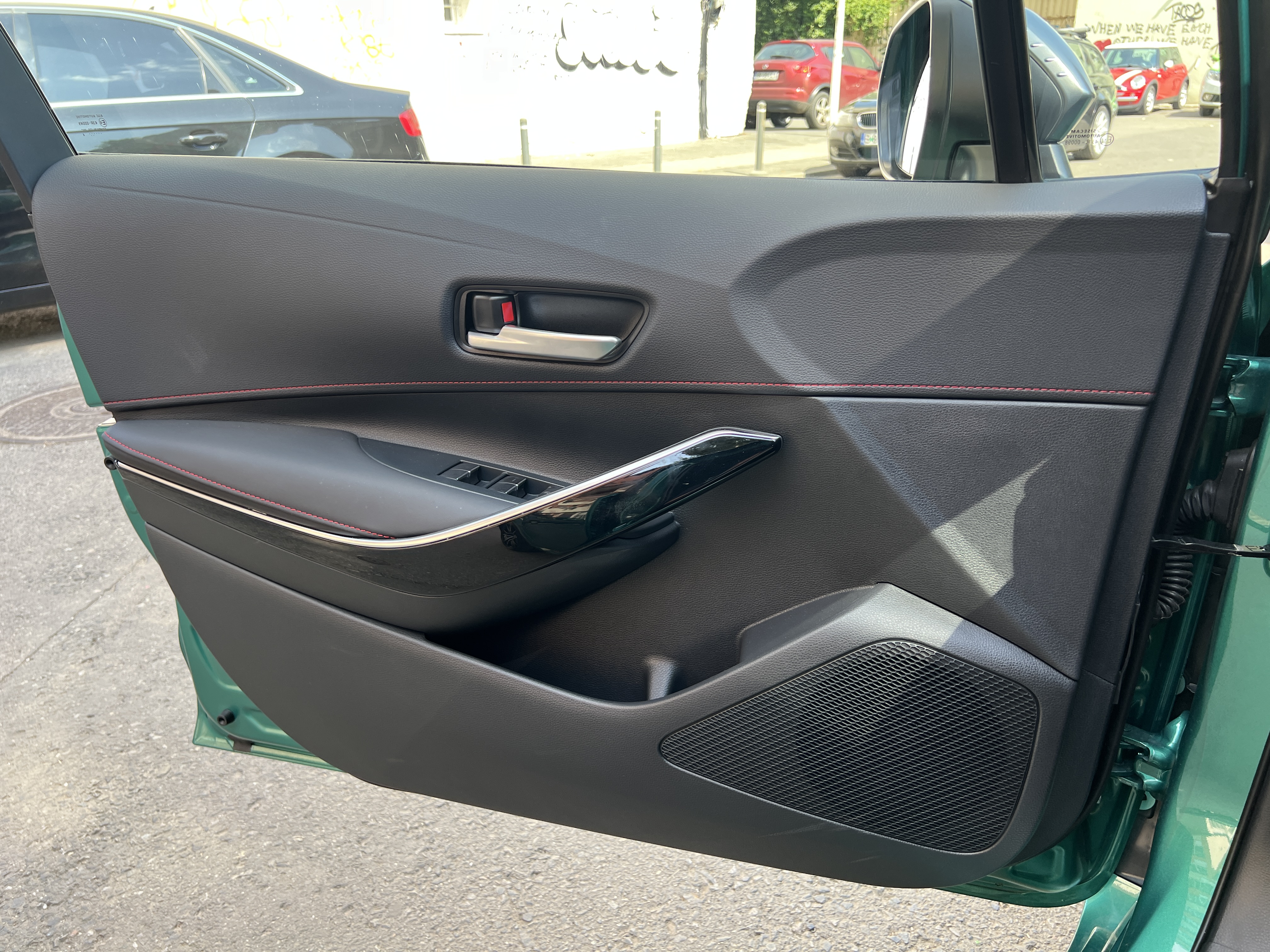 Interiorul Toyota Corolla GR Sport 2024 este caracterizat de un bord solid, majoritatea zonelor fiind îmbrăcate în materiale moi, cu doar câteva părți din plastic dur. Gurile de ventilație sunt înconjurate de un inel cromat care traversează bordul, iar în centrul acestuia se află o tabletă de 10 inch cu un sistem multimedia avansat, bazat pe procesor Nvidia și Android Automotive.