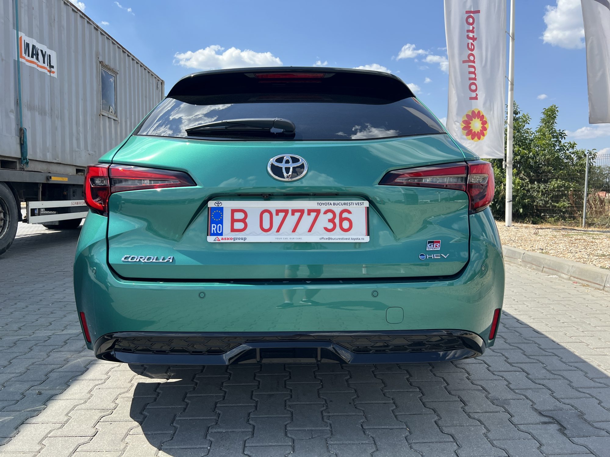 Exteriorul mașinii se remarcă prin ornamente de praguri din aluminiu, plăcuțe de protecție pentru uși GR Sport și jante de 18 inch cu Diamond Cut și inserții negre. Oglinzile au capace gri, barele longitudinale de pe plafon sunt negre, iar grila frontală este din plastic lucios negru, semi-deschisă. Bara spate este dotată cu un difuzor din plastic negru lucios și o nouă inscripție HEV, care indică prezența sistemului hibrid. Geamurile sunt fumurii pe spate și cu tentă pe față.
