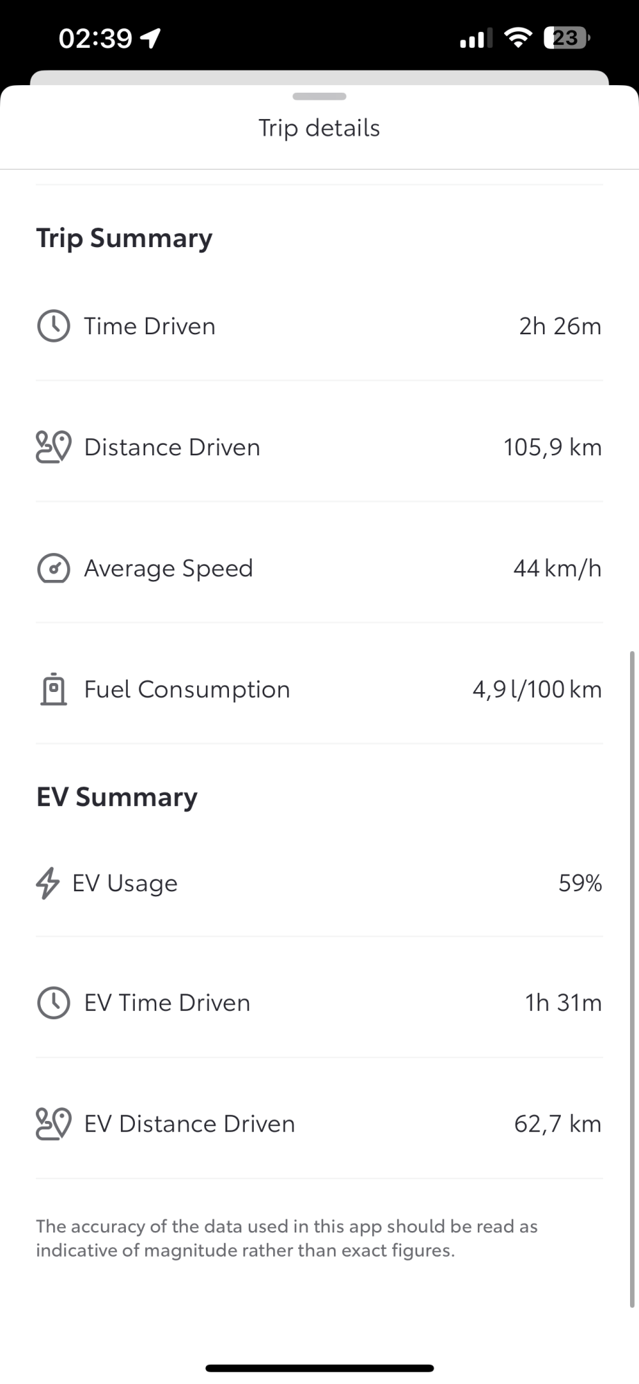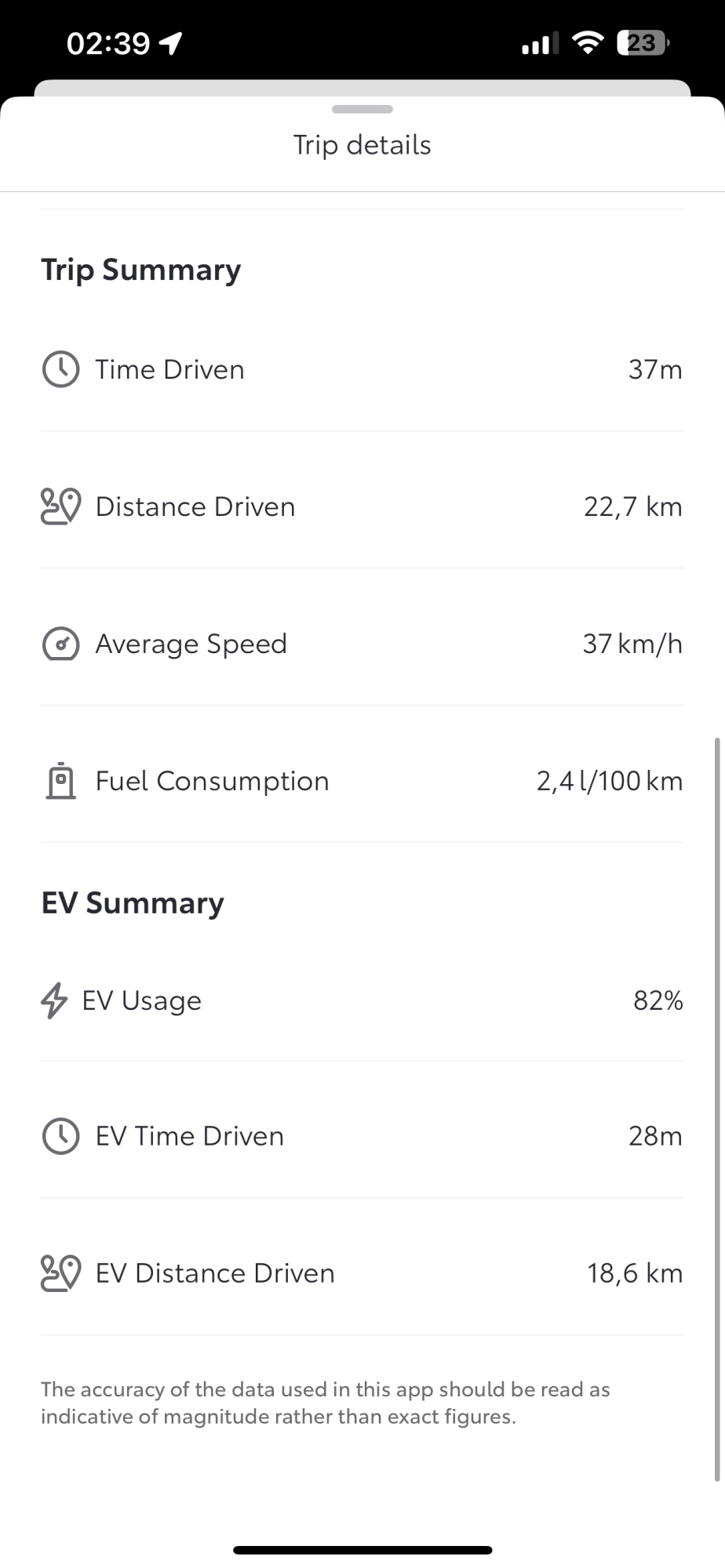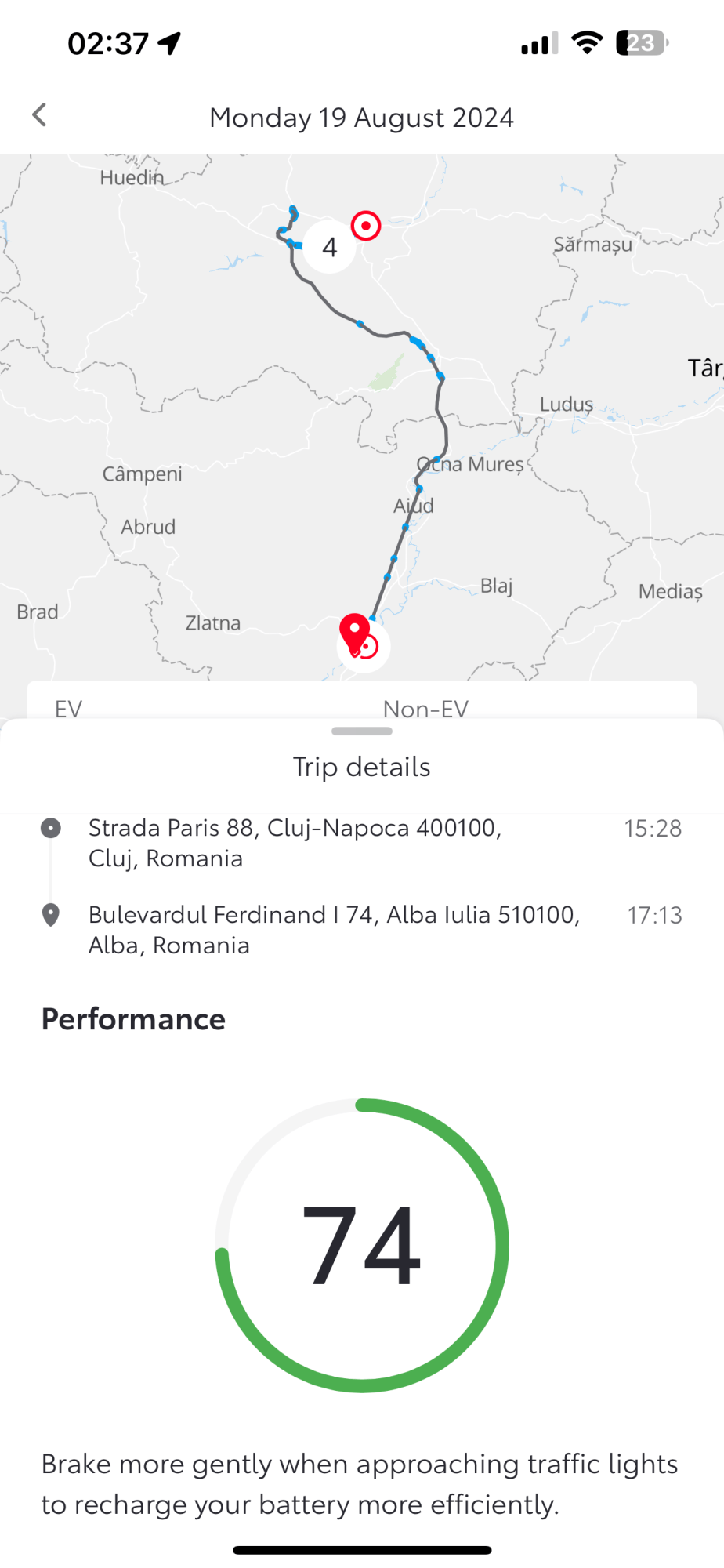 Este fantastic cum se conduce masina in oras si ce consumuri bune scoate.In medie o sa ai un consum de 5.5 in oras, consum real, trafic aglomerat, AC pornit. In conditii mai bune scoti si 4%. Noaptea poti foarte usor sa scoti 4% daca profiti si de baterie si nu accelerezi agresiv si anticipezi traficul.