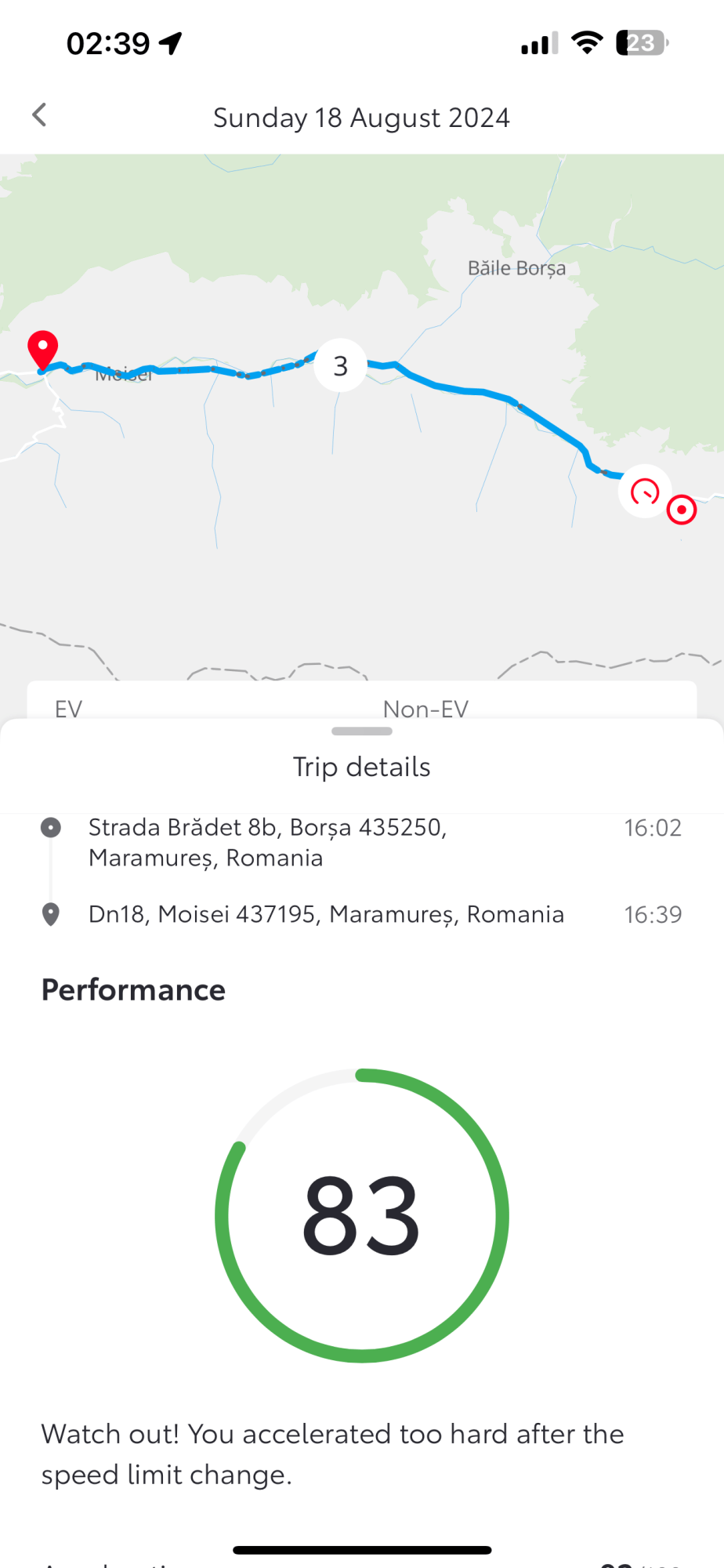 Am facut pana acum 2 drumuri lungi cu ea: Bucuresti – Brasov si retur si Bucuresti – Sighetul Marmatiei si retur, cu opriri prin Cluj, Alba, Sibiu, Brasov. Pana la Brasov am scos 6.1%, dar m-am distrat cu masina. Am rupt-o pe viraje imediat cum faci stanga la Predeal sa mergi spre Rasnov, iar la intoarcere am scos 4.8% pentru ca am mers normal.