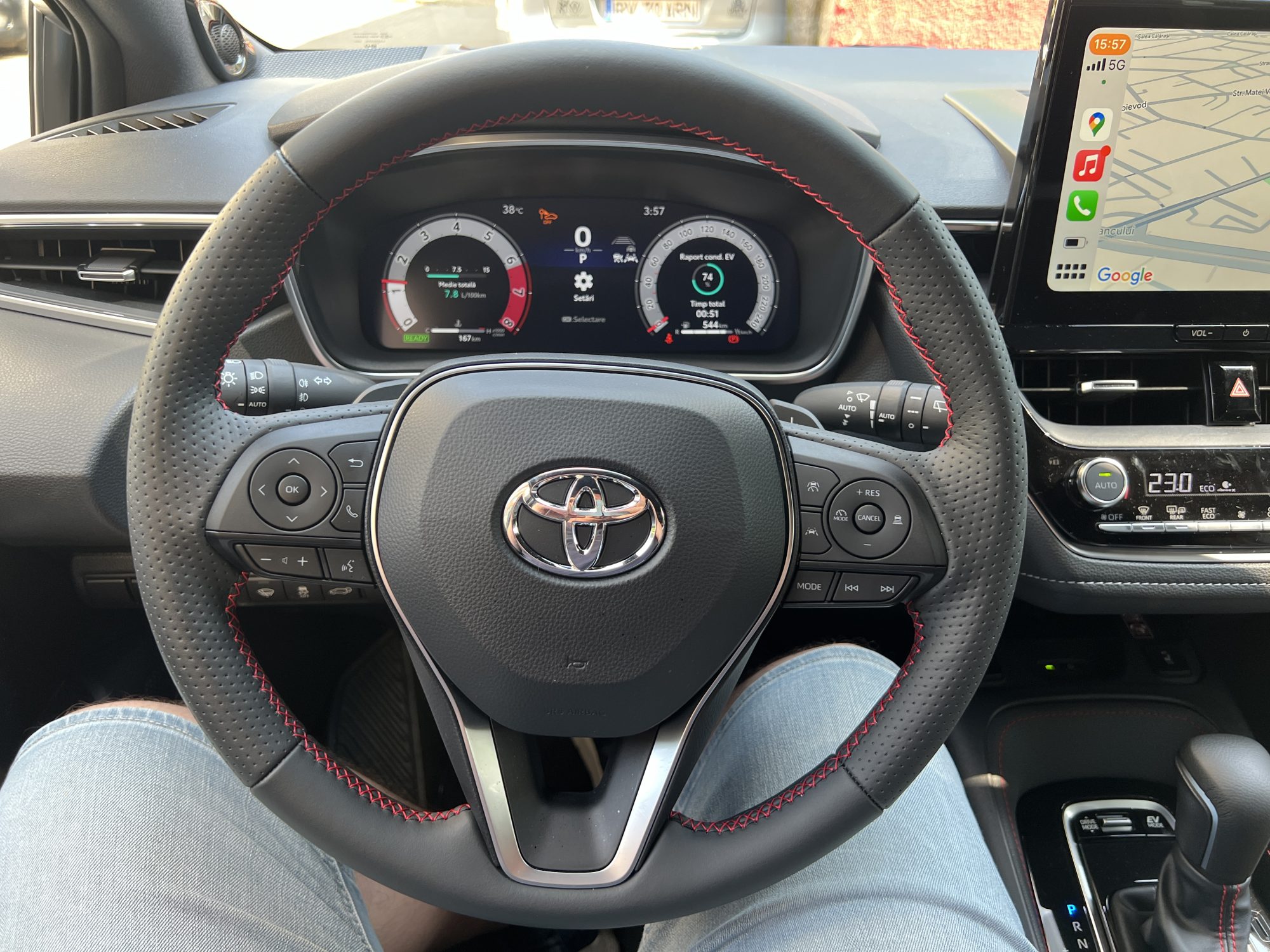 Fiind o mașină hibridă pe benzină, Corolla GR Sport necesită turatii mai mari pentru a experimenta pe deplin cei 200 CP. În timpul depășirilor, este necesar să urci peste 4000 RPM pentru a simți cu adevărat potențialul mașinii. Deși poți depăși fără a forța prea mult, accelerarea nu va fi suficient de rapidă pentru a realiza manevra în siguranță dacă nu apeși mai tare pe accelerație. După 4000 RPM, puterea și cuplul sunt evidente, dar vin cu un zgomot ușor deranjant pe termen lung, care poate fi plăcut pentru cei care apreciază sunetul unui motor sport.