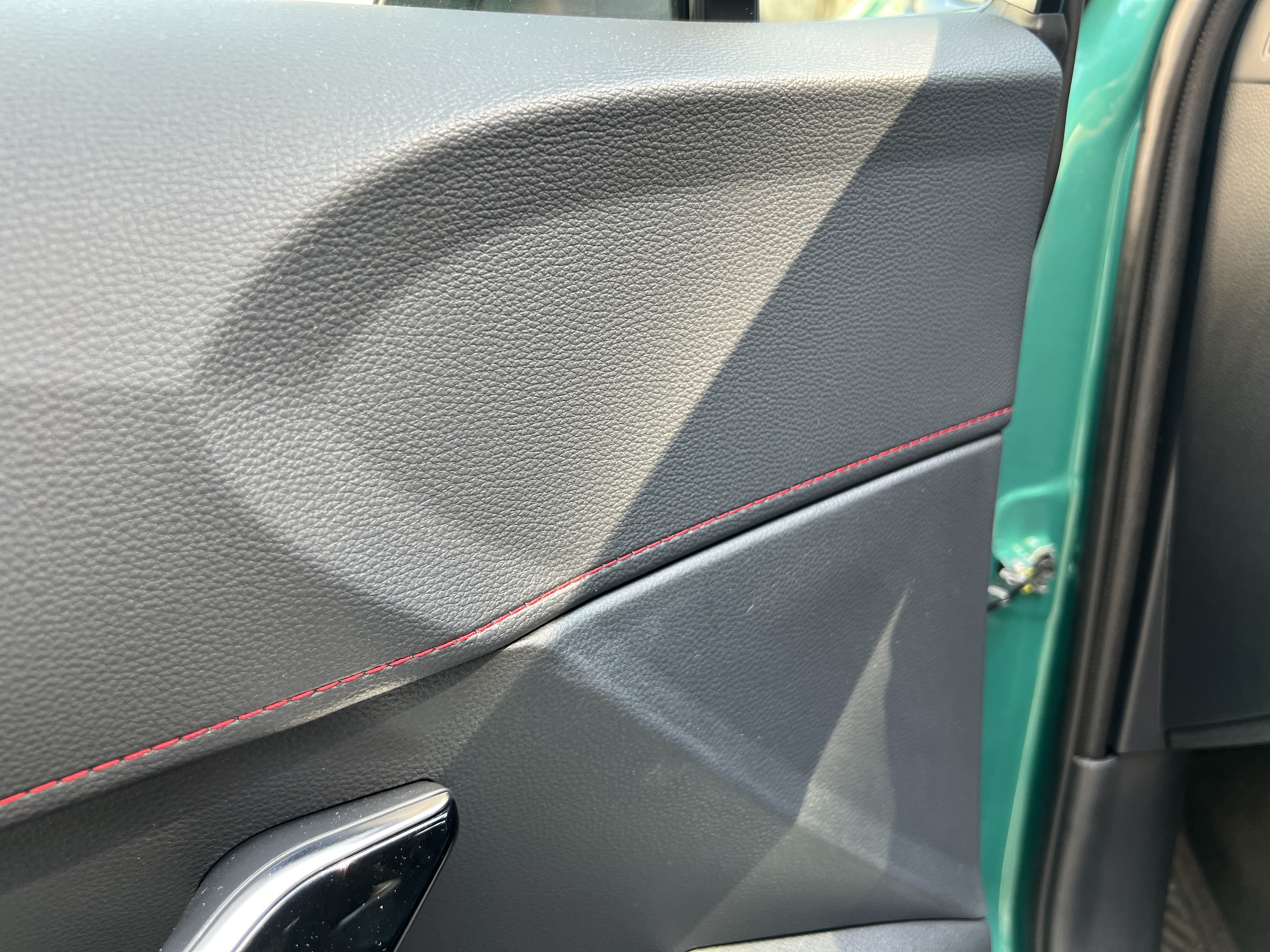 Interiorul ușilor este bine finisat, cu plastic moale pe toată suprafața, piele în zona de sprijin al cotului și manere argintii pentru deschiderea ușilor. Panoul de comandă al ușii șoferului este bine organizat, oferind funcționalități esențiale precum geamuri electrice, buton de închidere/deschidere a mașinii și reglajul oglinzilor.