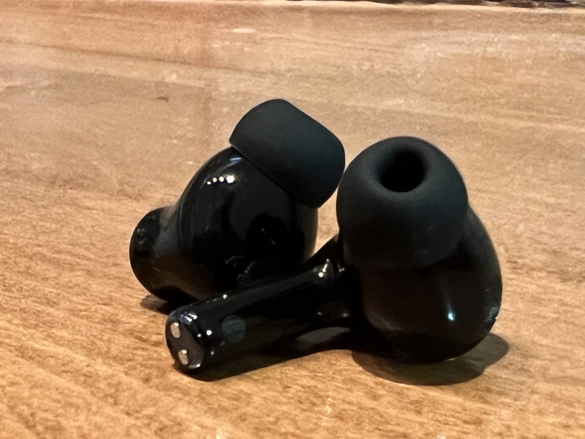 Căștile în sine au un design similar cu AirPods, ca și carcasa și sunt lejer de purtat. Materialul folosit este la fel de glossy și parcă aș fi preferat ceva mat aici. Pentru cei care fac jogging și transpiră (apropo, nu am găsit detalii despre ratingul IP), posibilitatea de a le scăpa din mâne este destul de mare.