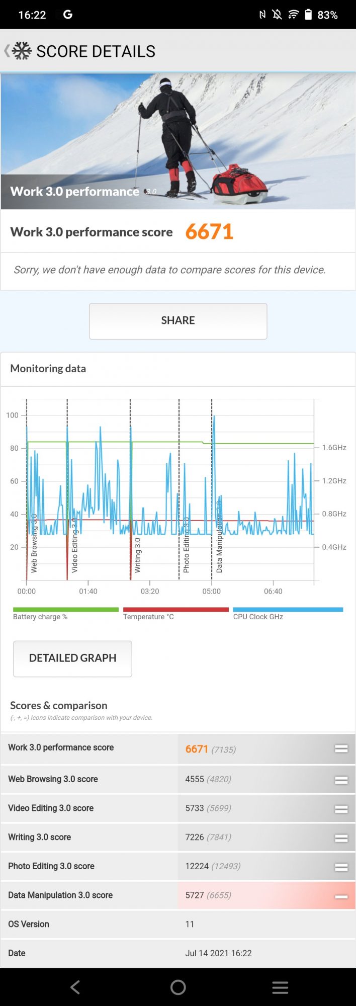 Ambii senzori de deblocare funcționează ireproșabil. Nu am întâmpinat vreo problemă în tot timpul cât am folosit telefonul. De asemenea, nici lag sau alte probleme nu am avut de raportat. Iar asta este extrem de îmbucurător pentru un telefom de gamă medie. Se vede ”mâna” procesorului (MediaTek Dimensity 800U), care este identic cu cel de pe Xiaomi Redmi Note 9T 5G, despre care Alex a spus că a fost plăcut impresionat. În teste, Dimensity 800U este similat ca rezultate cu Snapdragon 765G, tot un chipset dedicat telefoanelor midrange, dar mai des întâlnit pe telefoanele testate de noi (Nokia 8.3 sau vivo X51 5G).