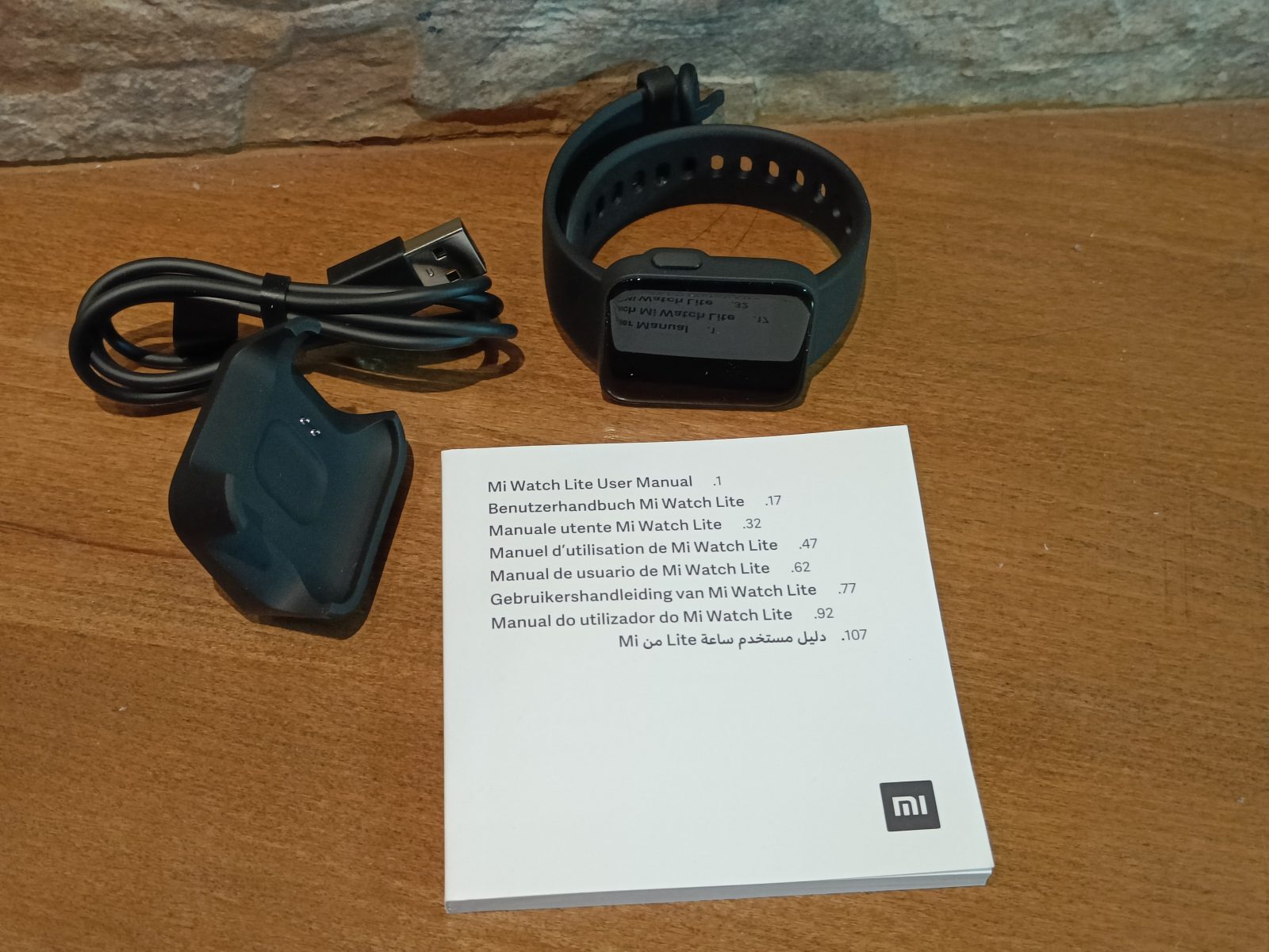 La interior găsim ceasul, dockingul de încărcare, manualul de utilizare și garanția. Încărcătorul este tot magnetic, ca la Mi Watch, dar are altă formă, adecvată celei a ceasului.