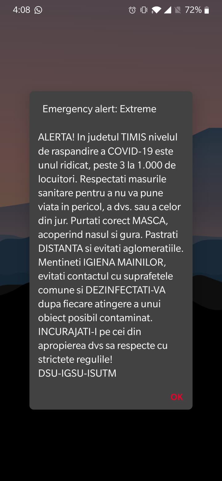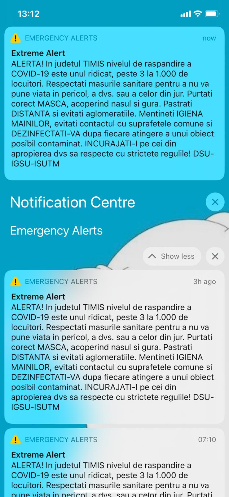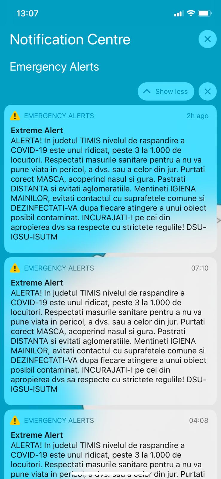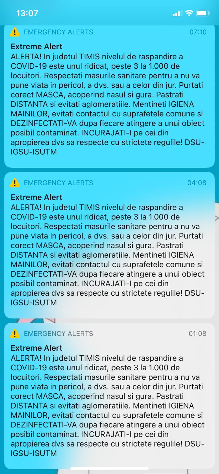 De ieri seară nu s-au mai oprit alertele de COVID din județul Timiș pe iPhone-ul din familie. Vine câte una o data la 3 ore. Zi, noapte, nu contează. Ori ceva e stricat, ori cineva își bate joc sau e foarte foarte prost.