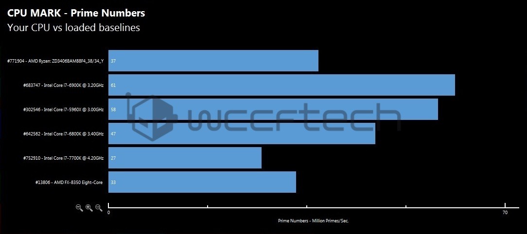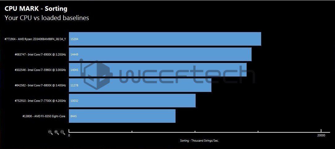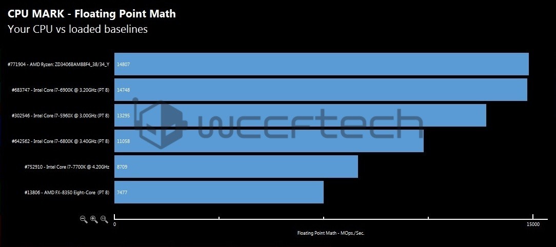 Procesorul a fost testat in Passmark pe o placa de baza MSI A320 cu socket AM4 si 16GB RAM DDR4. Tineti cont ca aceste procesoare testate sunt sample-uri, deci nu modele finale. Performanta este mai mica decat cea normala, iar programele de test nu pot identifica toate specificatiile. Si totusi, acest procesor a reusit sa intreaca urmatoarele modele: i7 6900K, i7 5960X, i7 6800K, i7 7700K si FX 8350. Deci le-a batut pe toate! In 5 din 8 modelul de la AMD a iesit invingator. Am lasat galeria foto mai jos.
