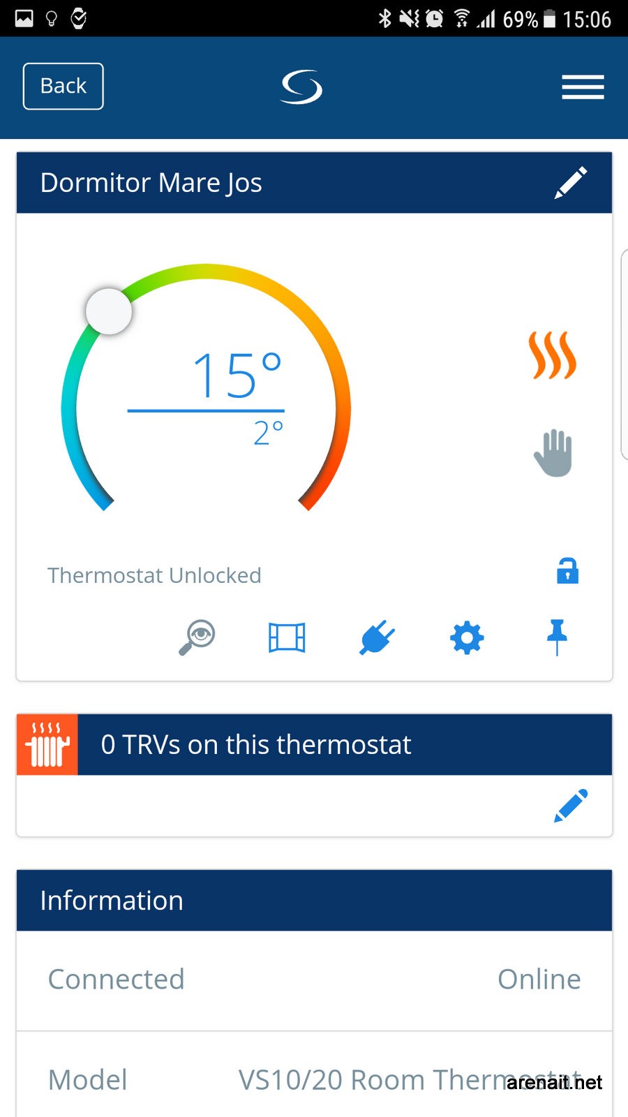 La partea de utilizare nu sunt extrem de multe de spus. Aplicatia e intuitiva si permite foarte usor utilizarea. Totul functioneaza foarte simplu: in momentul in care un termostat scade sub temperatura setata (fie ca e fix, fie ca e dupa un program pe zile stabilit) acesta declanseaza pornirea incalzirii. Iar in cazul meu a fost vorba despre pornirea unei prize inteligente care activeaza convectorul.