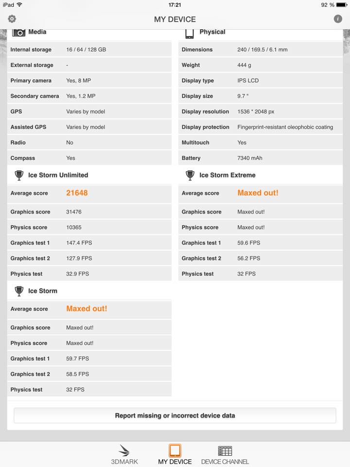 - Ecran: 9.7 inch, IPS, 1536 x 2048 pixel, Corning Gorilla Glass 3