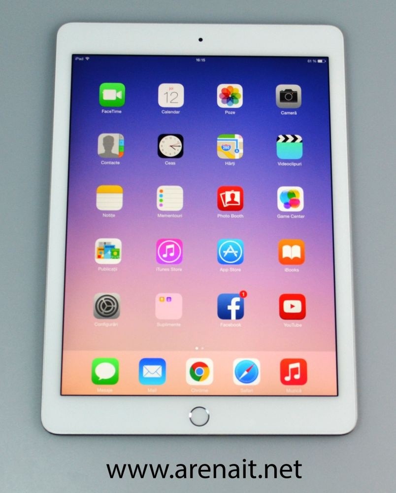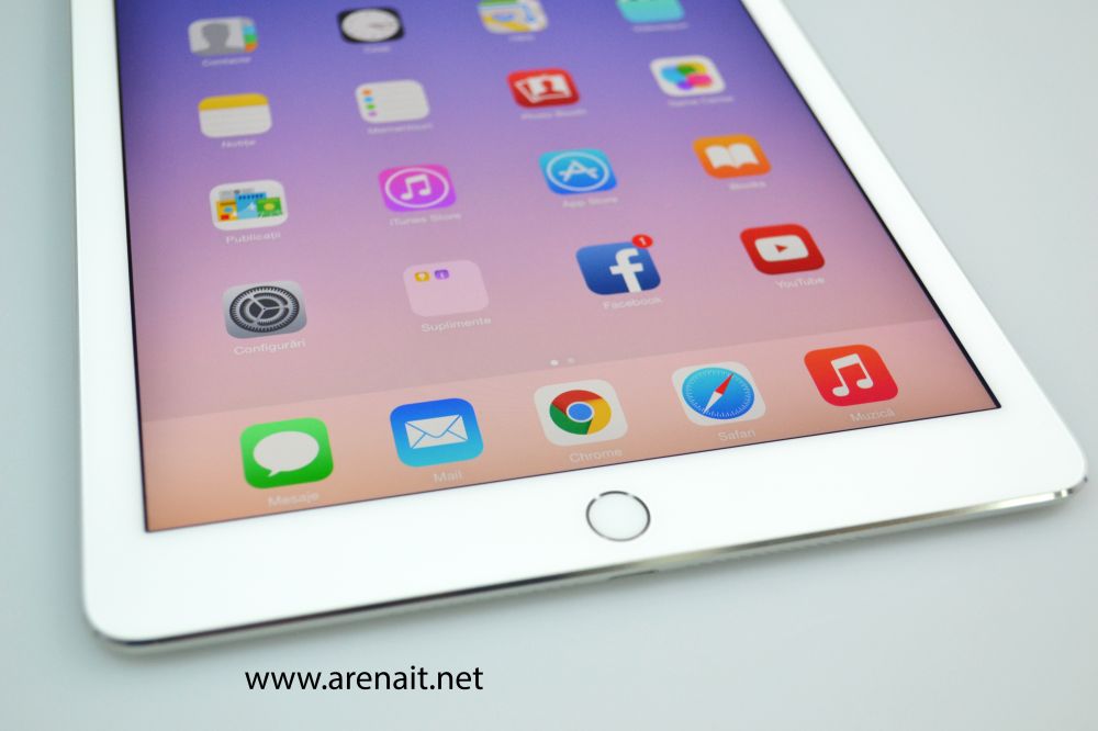 Display-ul are o diagonala de 9.7 inch si rezolutie 1536 x 2048. Este foarte luminos si poate fi folosit fara probleme in bataia soarelui. Sticla care protejeaza ecranului este oleofoba ceea ce inseamna ca amprentele nu se vor depune atat de repede. Culorile sunt naturale si foarte vii, insa nu sunt deloc suprasaturate. Unghiurile de vizualizare sunt excelente facand din tableta iPad Air 2 un companion perfect daca doriti sa urmariti multe filme.