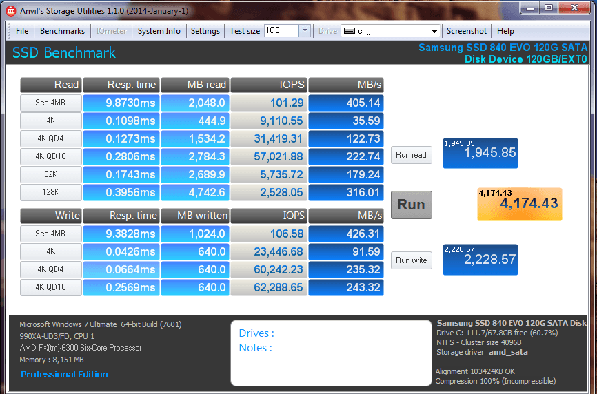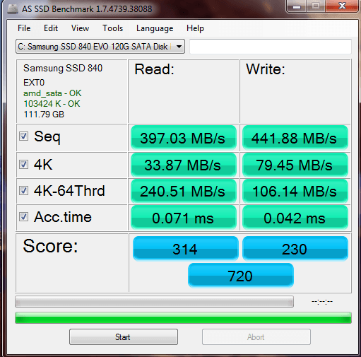 Din cate vad acolo, nu ai pus Rapid pe On. Iti foloseste din memoria RAM pentru marirea performanta. Iar scorurile vor fi aproape duble.