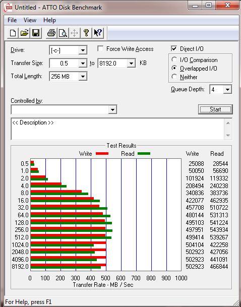 SI eu am acest model de ssd iar mie imi da peste specificatii la read si write, de exemplu la read imi da 545 mb/s si la write 533 mb/s. Foarte multumit de el.
