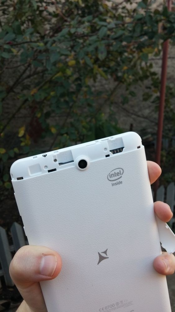 Constructia tabletei este decenta, dintr-un plastic dur rezistent la zgarieturi si socuri. Capacul ce ofera acces la slotul SIM si cel microSD este cam greu de scos, insa protejeaza bine zona. Cum va spuneam, este o tableta 3G, deci puteti introduce o cartela SIM cu date sau de voce. Puteti suna si sa vorbiti direct de pe tableta, aceasta venind cu speaker dedicat.