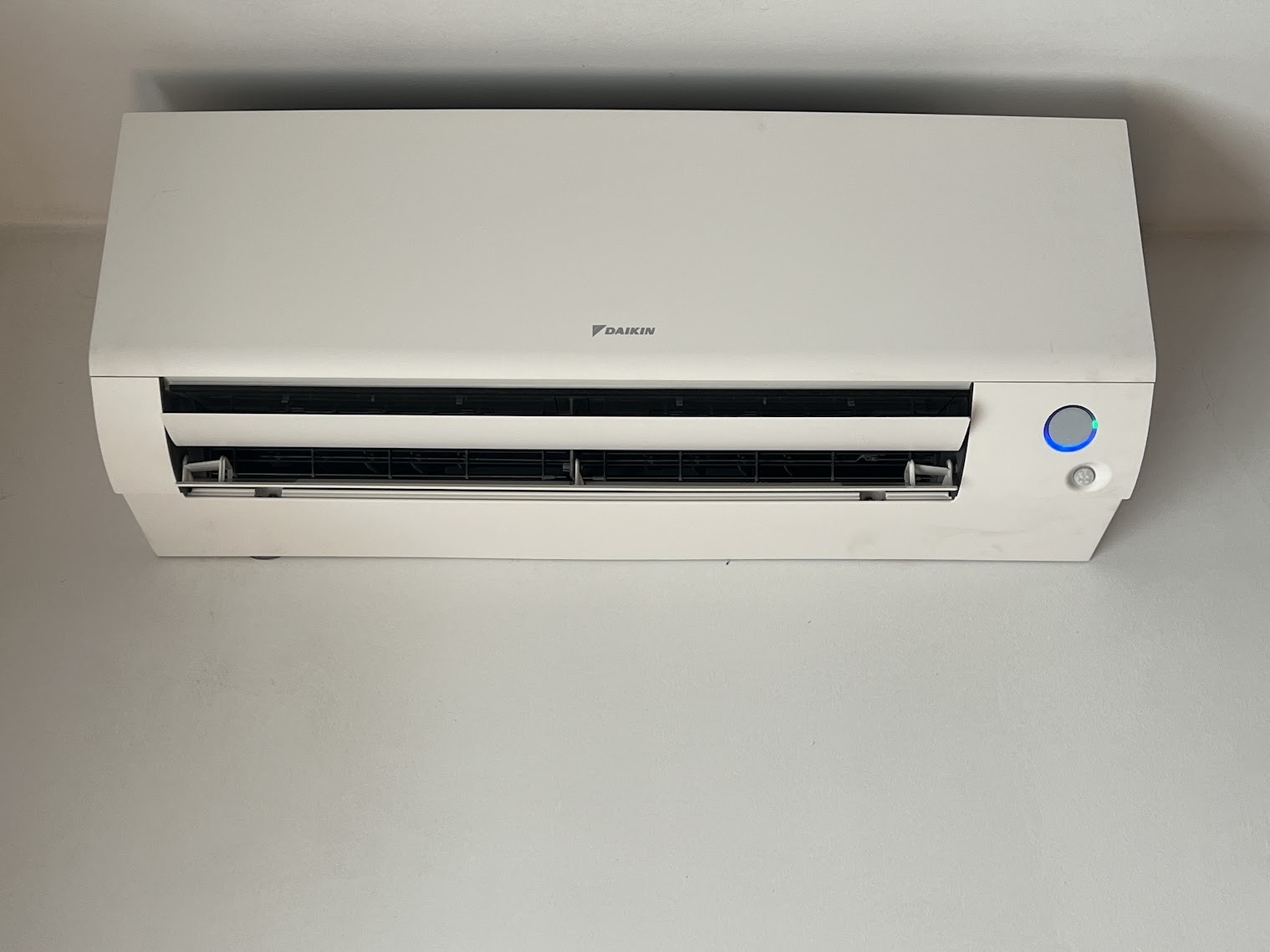 Prin urmare, am renunțat la ideea de a monta doar o climă pe casa scării (care făcea față, dar cum unele uși mai stau închise, nu era eficient deloc, dar și la cea de a pune câte una în fiecare cameră. Așa că am ales să avem câte una în fiecare dormitor de sus (trei de 9.000 BTU fiecare), una de 18.000 BTU la intrare (care acoperă living, dining și bucătărie, care sunt semideschise) și una de 7.000 BTU în biroul meu de jos. Toate, în afara celei din dormitorul matrimonial, sunt legate la aceeași unitate externă (care mai poate duce încă doua conexiuni) și sunt, după cum am menționat, Daikin, produse în… Japonia. 😛
