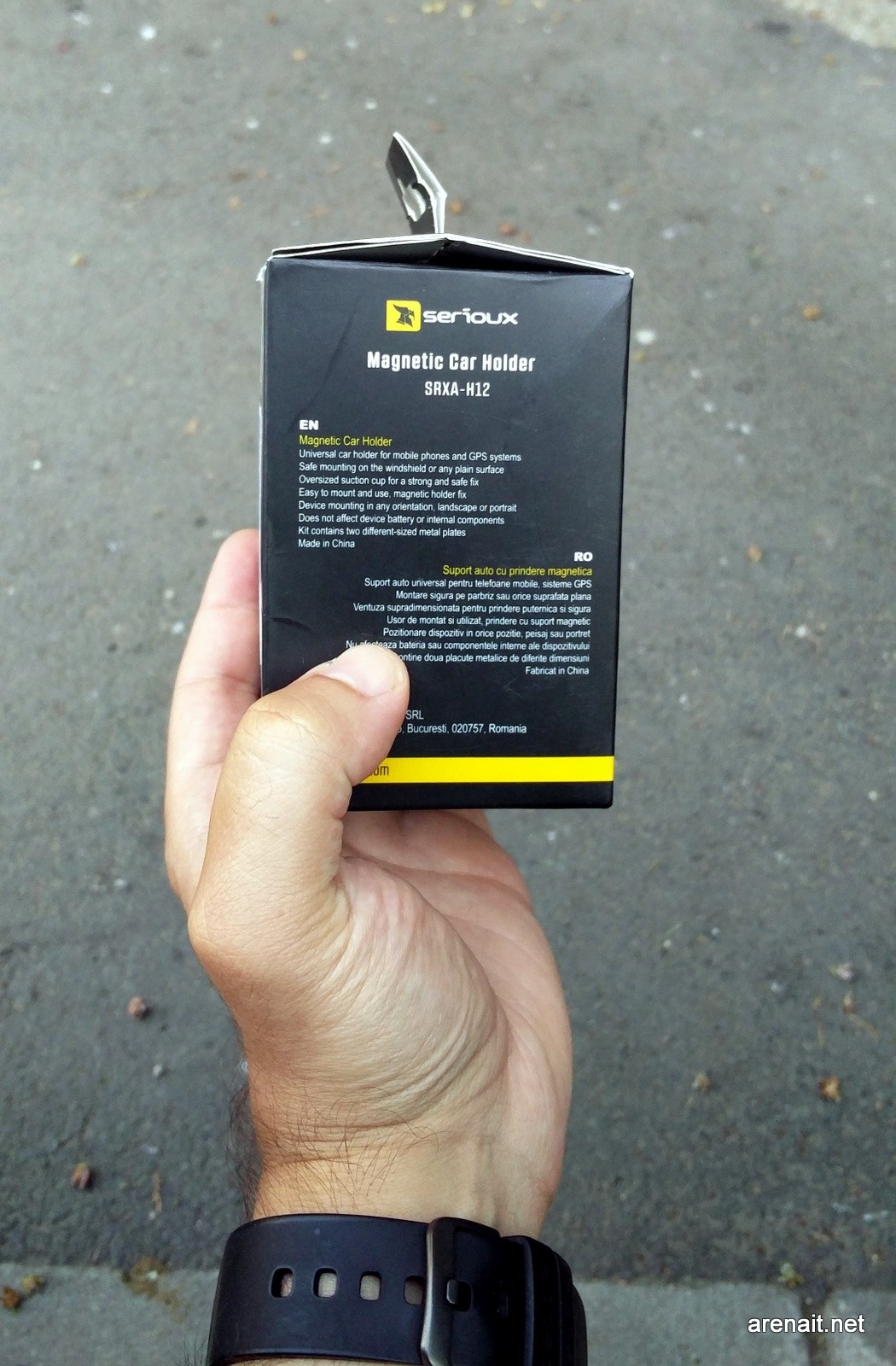 Asa ca am studiat putin problema suportilor magnetici si am comandat doua suporturi Serioux SRXA-H12. De ce doua? Pentru ca unul l-am pus intr-o masina a familiei si altul in cealalta, iar o tablita dreptunghiulara (ca vine si cu una rotunda cu banda adeziva) am pus-o la mine in telefon (OnePlus Two) si una la jumatatea mai buna (ASUS ZenFone Selfie). Asa ca, de acum, nu conteaza cu ce masina mergem, putem sa folosi suportul care e deja pe parbriz.