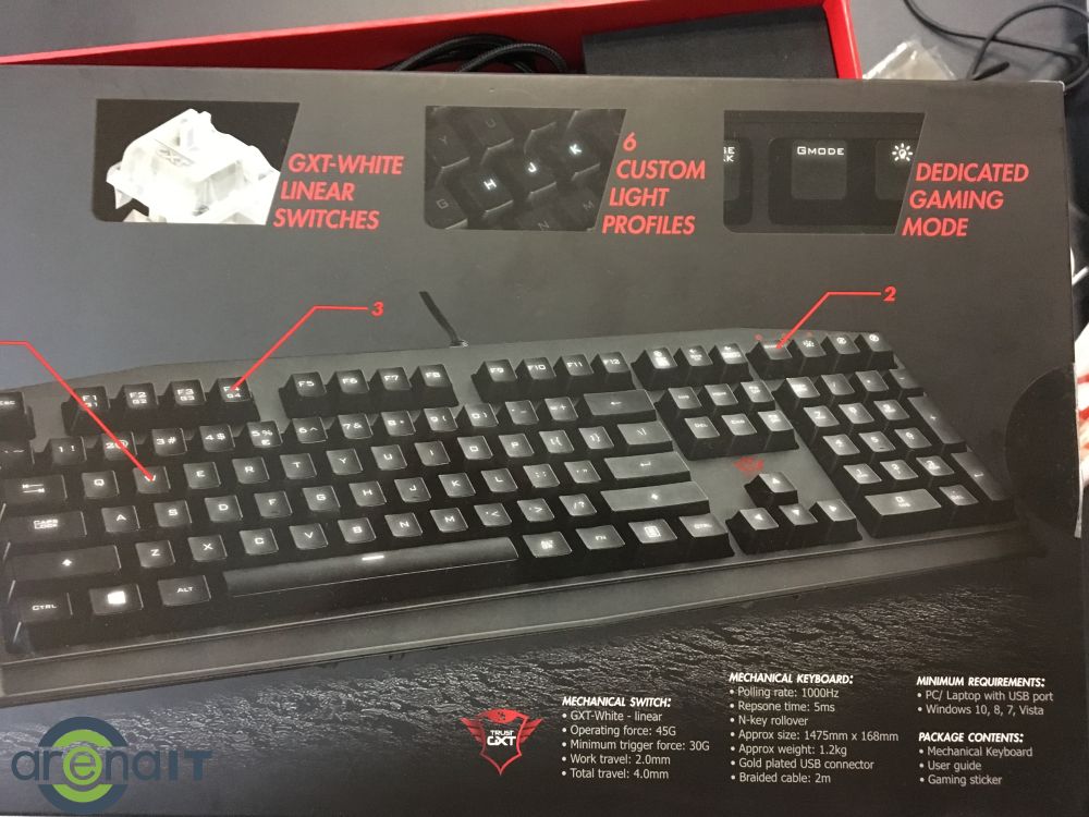 Insa marele ei secret sunt tastele mecanice. De fapt switch-urile. Ele sunt proprietare Trust si sunt de tipul White. Nu stiu exact care este echivalentul lor de la Cherry si nu vreau sa spun o prostie.