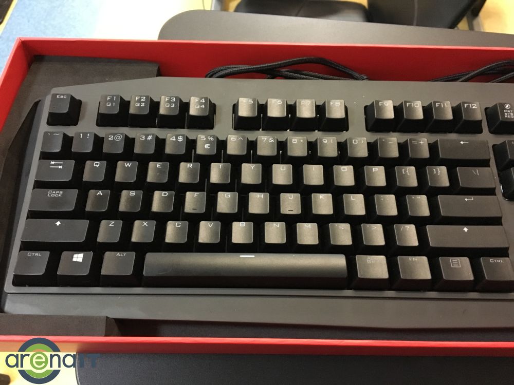 Tastele F1, F2, F3 si F4 pot fi configurate ca taste Macro si are taste speciale pentru a opri sunetul imediat sau iluminarea. In rest este o tastatura normala, nu iese in evidenta cu nimic.