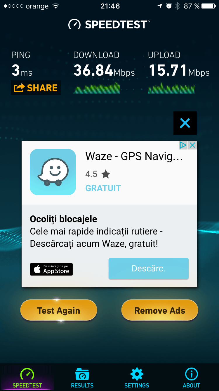 Am repetat testele de mai multe ori pentru a fi sigur de rezultat. Mereu au fost aceleasi. Si totusi ma intreb de ce sunt unele variatii atat de mari intre benzi si de ce am viteza mai mica cand sunt langa router decat daca sunt la o distanta mai mare de el.