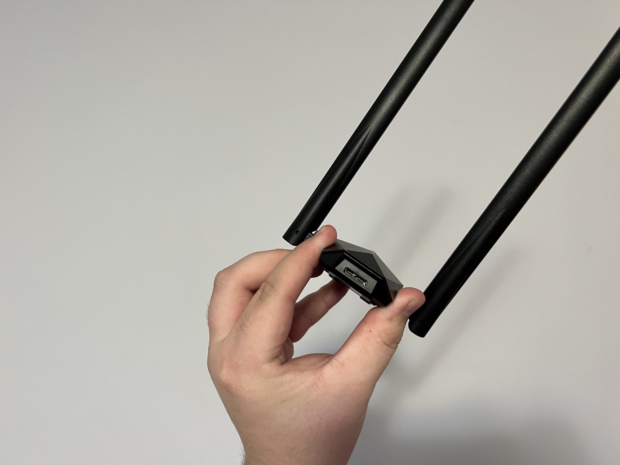 Sa sim sinceri, cate poti spune despre doua antene? Nu multe. El arata interesant, parca ar fi ceva robot dintr-un desen animat. Nu arata rau, dar trebuie sa-i gasesti un loc sa nu te incurce.