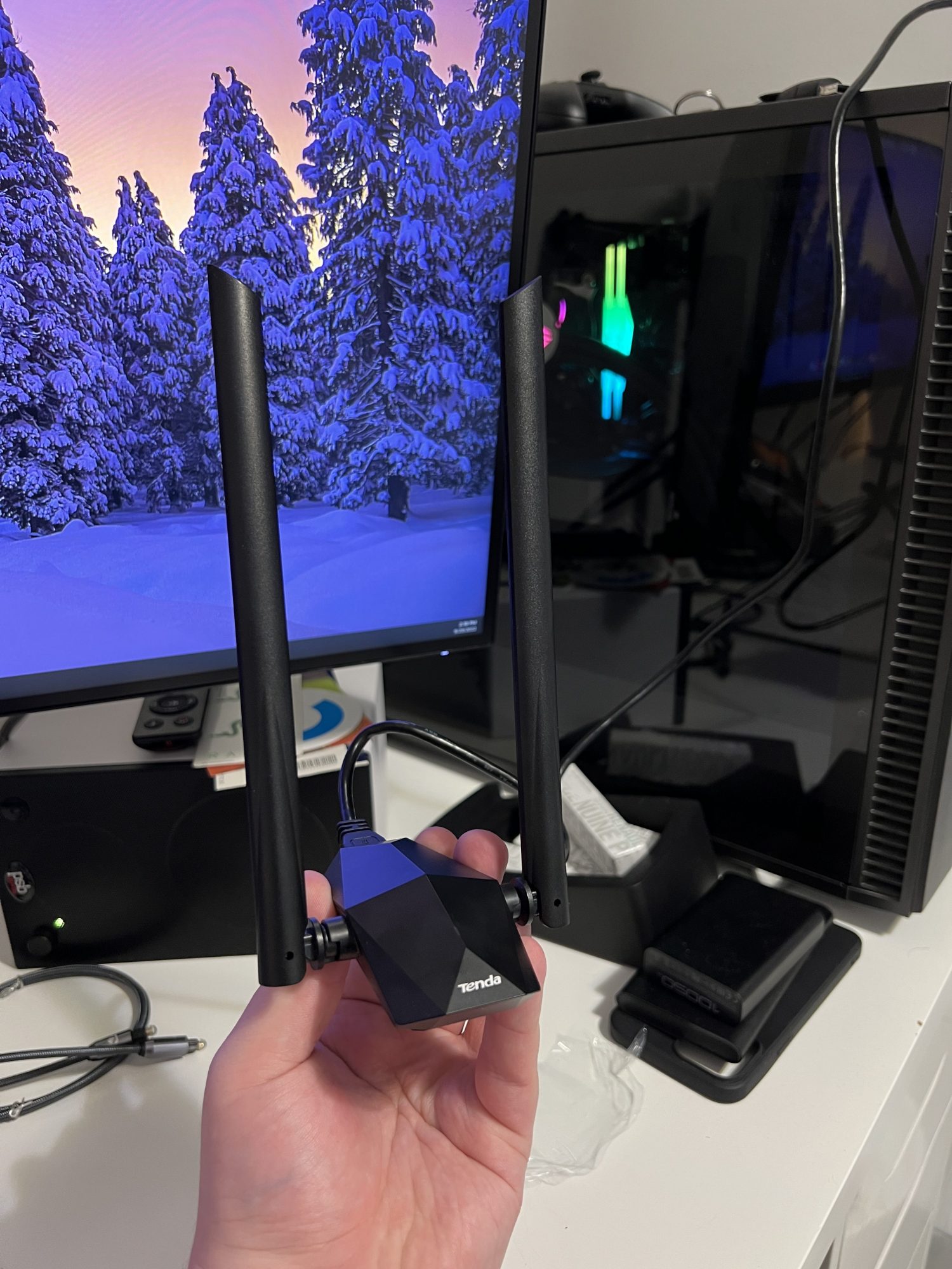Am folosit mai multe solutii in trecut, toate foarte bune, insa Tenda U18a este un pic diferit. Se conecteaza la un USB 3.0 printr-un cablu de 0.5 metri, iar aparatul in sine il pozitionezi unde vrei.
