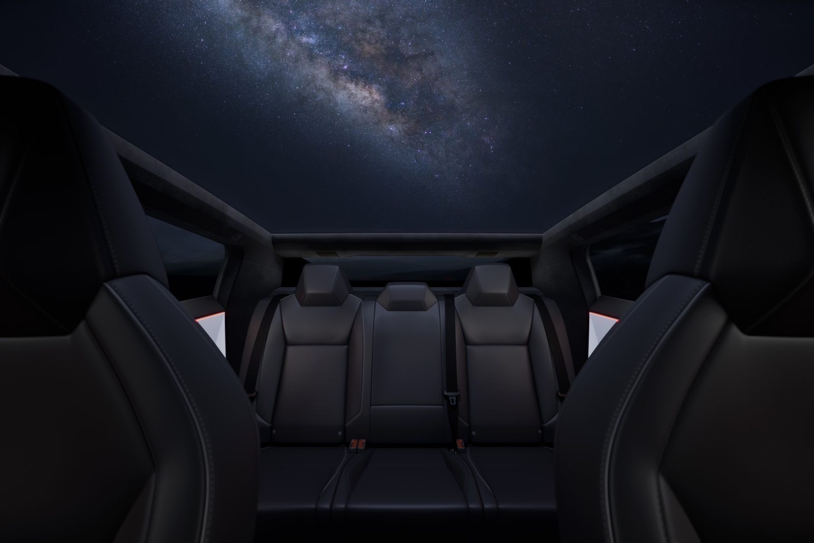 Si cam astea sunt specificatiile celor trei modele. Am mai aflat ca are suspensie pneumatica, diferentiale blocante si vireaza si cu rotile din spate. Are doua display-uri, unul in fata de 18.5 inch si unul in spate de 9.4 inch, similar cu Model 3 Highland.