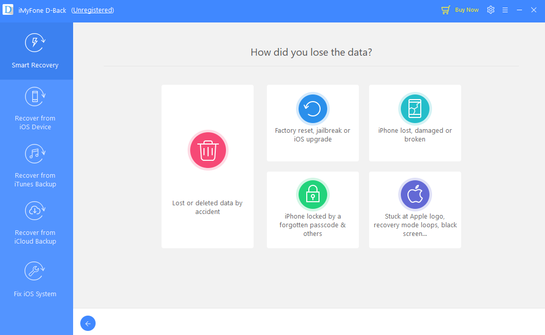 In Smart Recovery ai mai multe variante de recupere a datelor in functie de cum le-ai pierdut:sterse din greseala, resetare din fabrica, jailbreak, telefon stricat sau freeze.